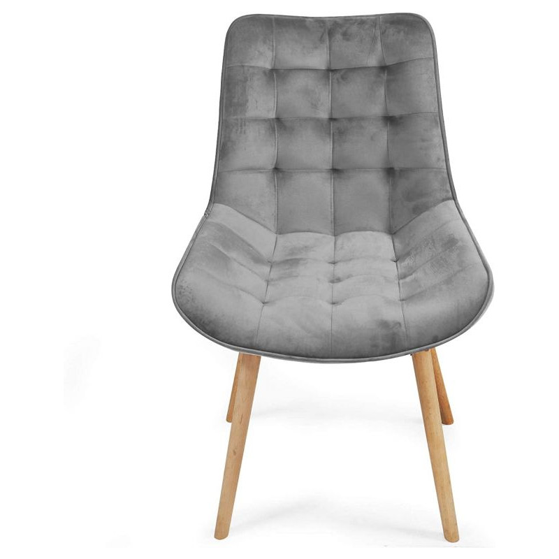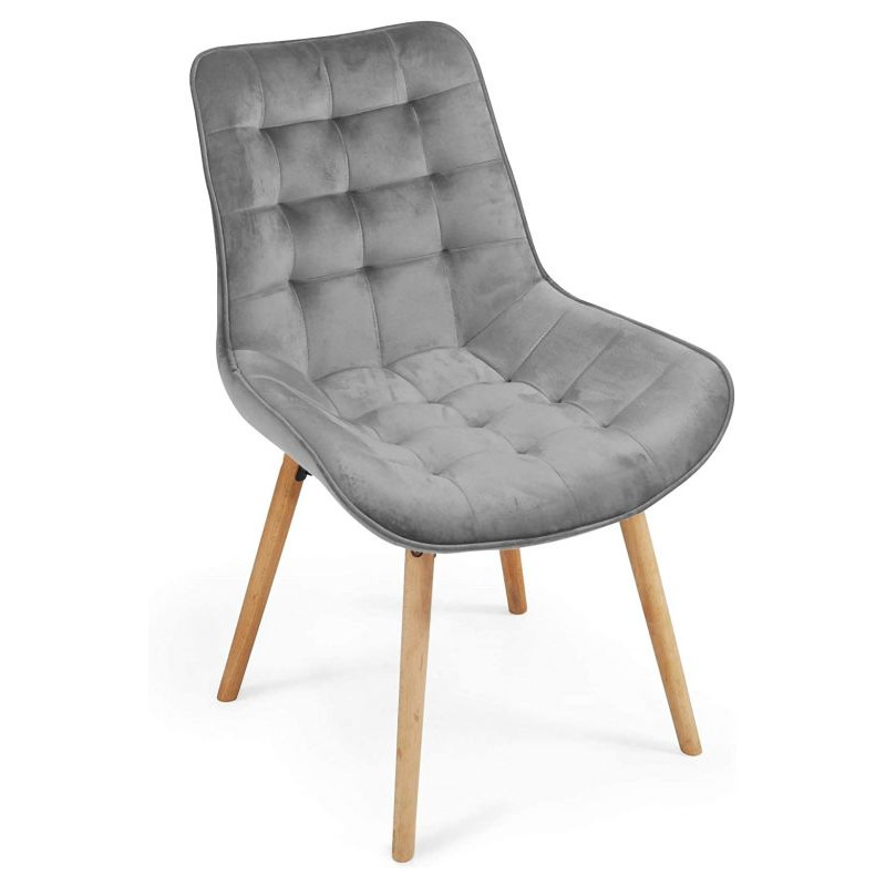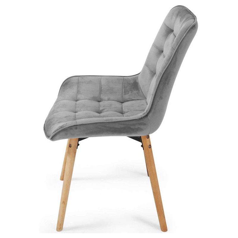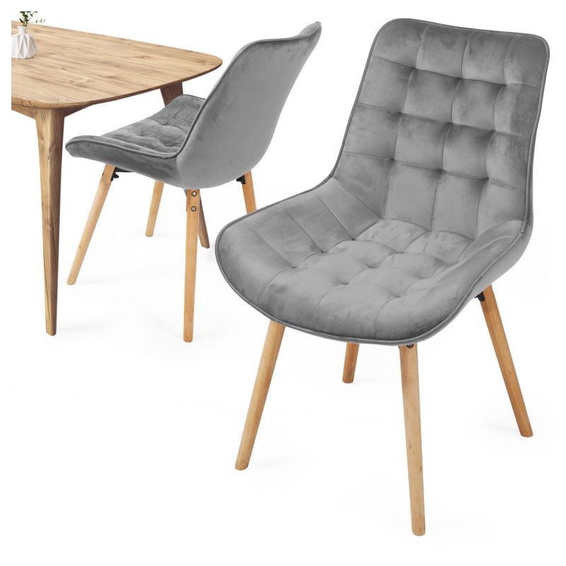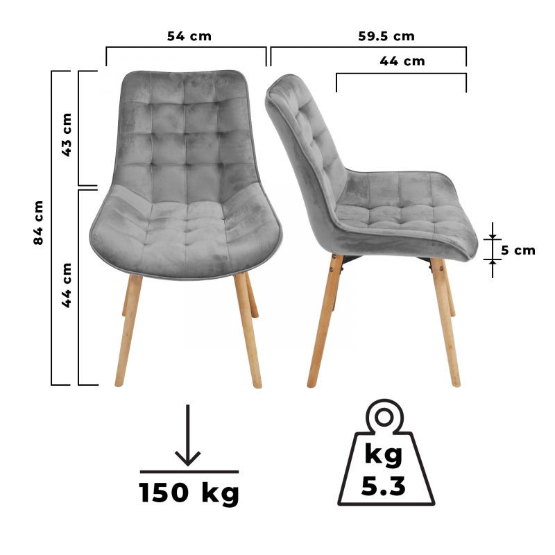 Jedálenské stoličky sú vyrobené zo zamatu. Čalúnenie Vám zabezpečí pohodlie a prešívanie dodá stoličkám ten správny dizajn. Nohy z bukového dreva zaisťujú skvelú stabilitu. Vďaka dizajnu je stolička vhodná nielen do kuchyne. Záleží len na Vás kam si stoličku umiestnite.