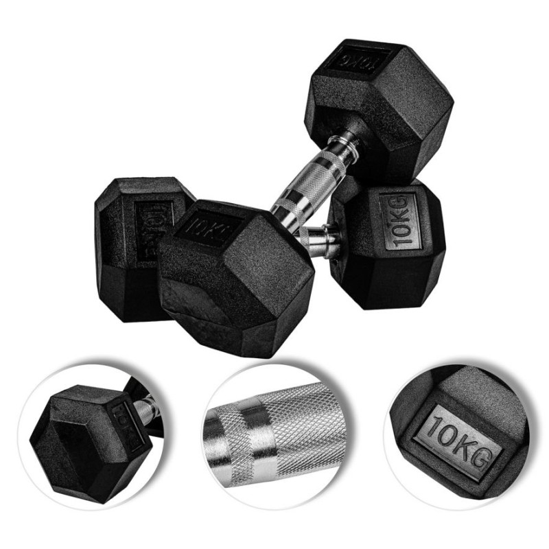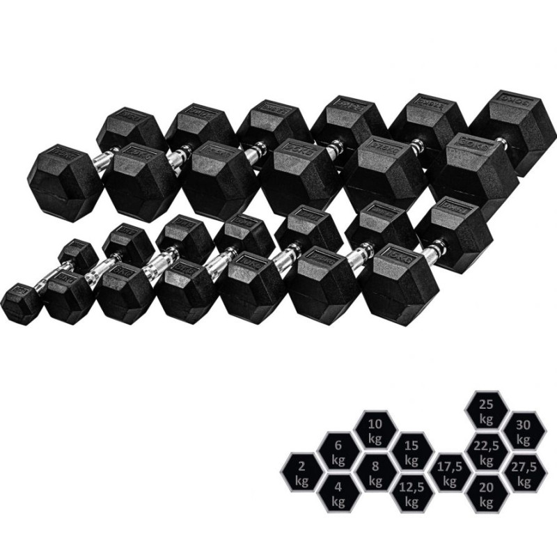 Rukoväť z chrómovanej ocele je priečne vrúbkovaná, čo zaisťuje bezpečné uchopenie. Liatinové jadro je potiahnuté špeciálnym gumovým povrchom, ktorý zabraňuje skĺzavaniu činiek. K dispozícii v 13 rôznych váhových veľkostiach - kompletne testované na škodlivé látky.