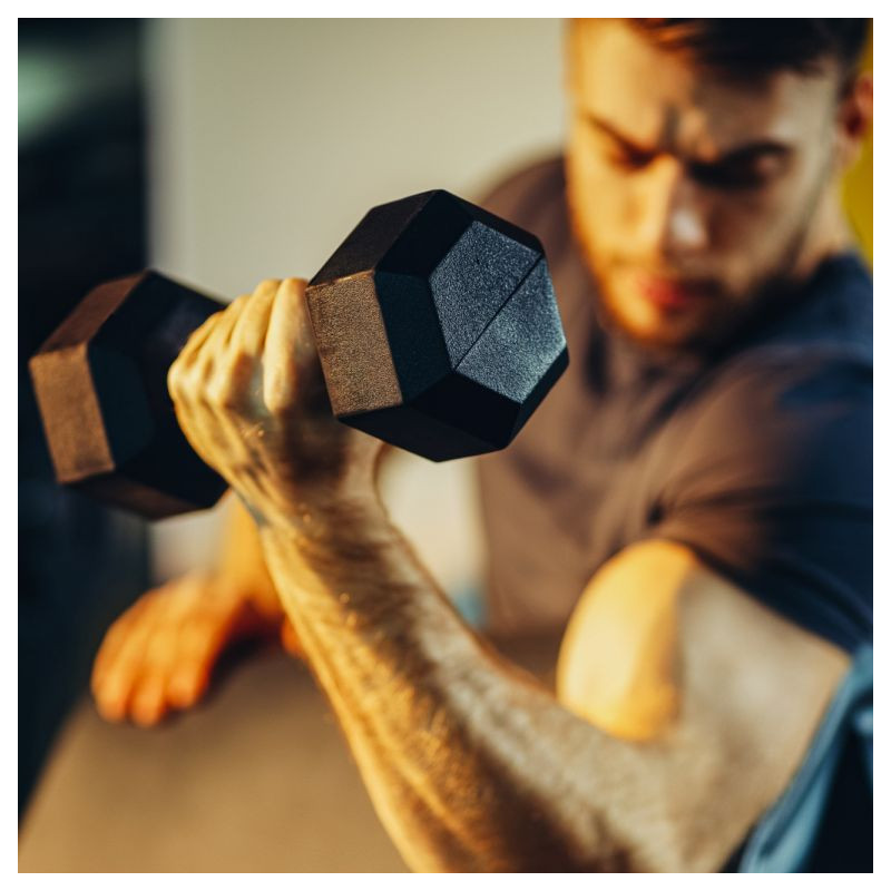 Rukoväť z chrómovanej ocele je priečne vrúbkovaná, čo zaisťuje bezpečné uchopenie. Liatinové jadro je potiahnuté špeciálnym gumovým povrchom, ktorý zabraňuje skĺzavaniu činiek. K dispozícii v 13 rôznych váhových veľkostiach - kompletne testované na škodlivé látky.