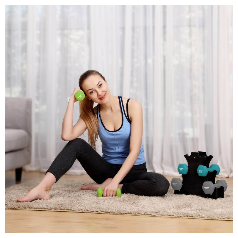 Chcete cvičiť bez toho, aby ste museli chodiť do posilňovne? Táto sada neoprénových činiek so stojanom je ideálnou voľbou pre rýchle domáce cvičenie, silový tréning a spaľovanie kalórií. Vďaka trom hmotnostiam, z ktorých si môžete vybrať, môžete ľahko prispôsobiť intenzitu svojho tréningu a farebný dizajn rozžiari váš domáci fitness kútik.