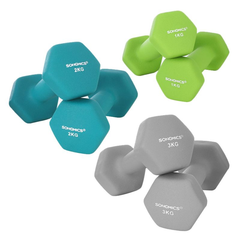 - Tri rôzne závažia – sada obsahuje 1 kg, 2 kg a 3 kg činky pre postupné zvyšovanie záťaže.