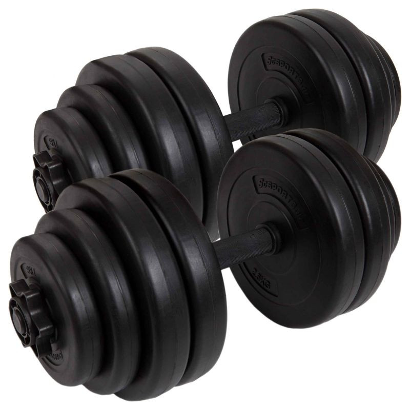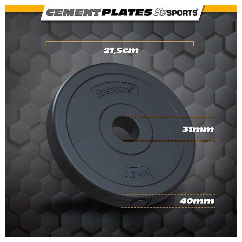 - Hmotnosť diskov: 8 x 2,5 kg, 4 x 1,25 kg, 4 x 1 kg