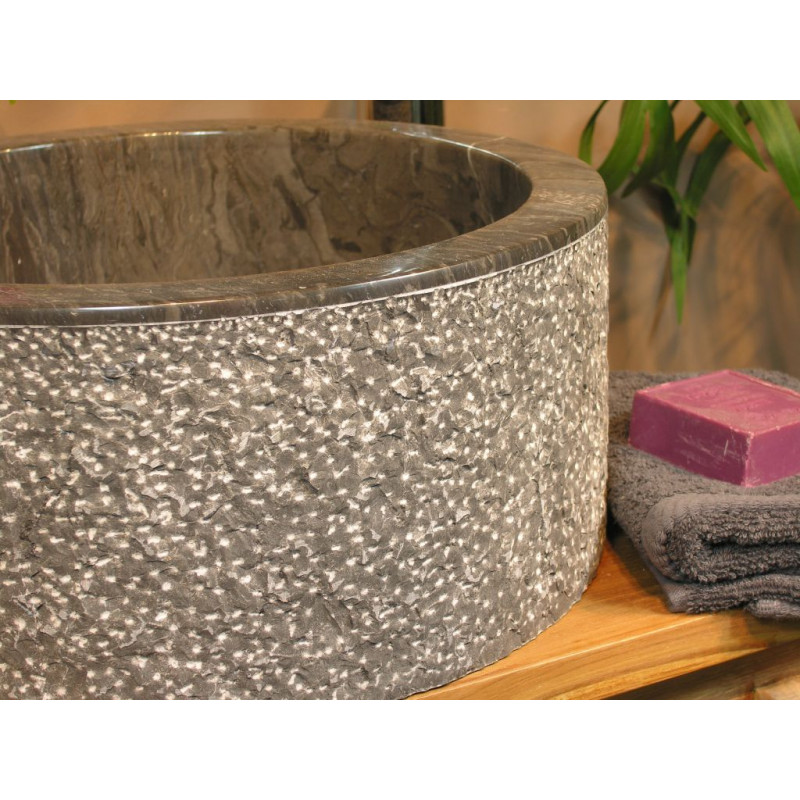 Designové umývadlo Mirum 509 na dosku je vyrobené z jedného kusu kameňa, pri spracovaní sa nepoužíva žiadne lepidlo, tmel ani farba. Toto luxusné kamenné umývadlo je okrúhle, vnútorná časť je ručne leštená, vonkajšie bočné steny majú hrubý, štokovaný povrch.