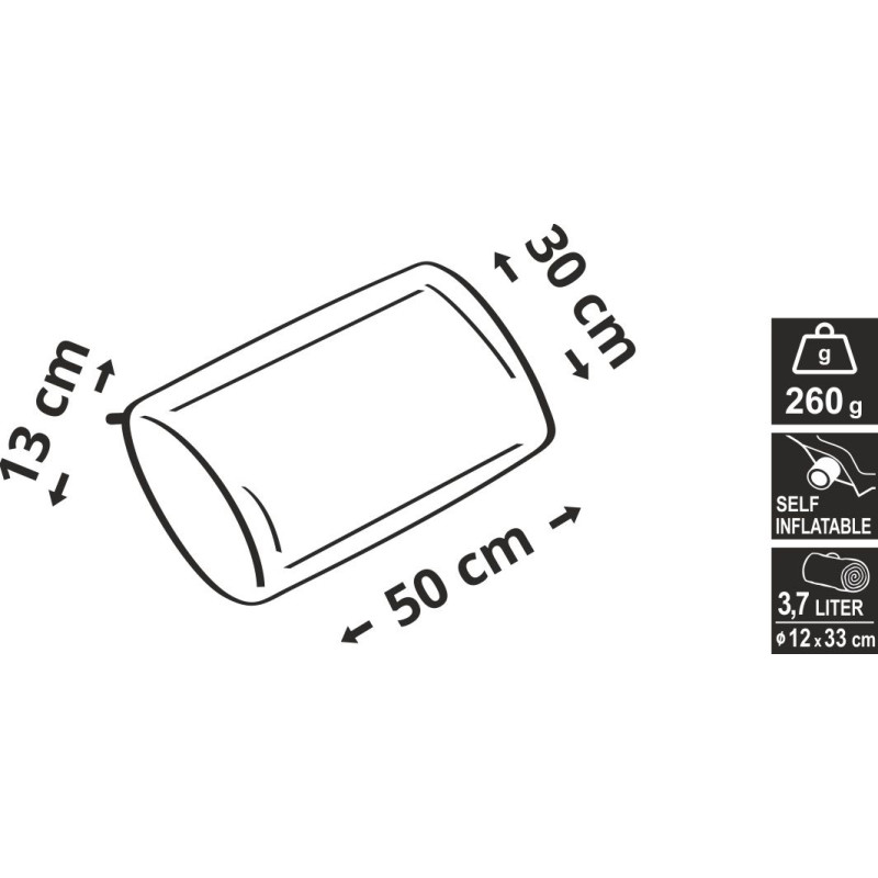 Rozmery 50 x 30 cm a výška 13 cm robia z vankúša pohodlný a príjemný doplnok pre kemping, najmä pri prenocovaní v spacom vaku. Vankúš však môže byť využitý aj ako pohodlná, izolačná podložka na sedenie. Jedná sa o samonafukovací vankúš využívajúci technológie, kedy sa po otvorení nafukovacieho ventila začne vzduchom plniť penové jadro spôsobené expanziou. Potom vankúš získa svoj tradičný tvar. Pre opätovné zloženie sa postupuje rovnako ako pri bežných nafukovacích doplnkoch, teda tlakom a vymačkaním zvyšného vzduchu.