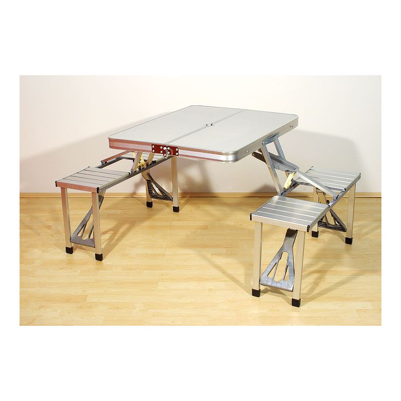 Tento praktický skladací stôl so vstavanými lavicami je ideálny pre všetkých táborníkov, záhradníkov, vodičov kamiónu a všetkých, ktorí potrebujú kompaktné prenosné posedenie. Po zložení celej súpravy sú rozmery kufra len 85 x 34 x 10 cm, čo znamená pohodlné skladovanie aj prenášanie.