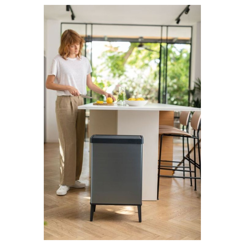 - Utesnené veko efektívne znižuje nepríjemné pachy a udržuje obsah koša skrytý, čím prispieva k príjemnému prostrediu v domácnosti.