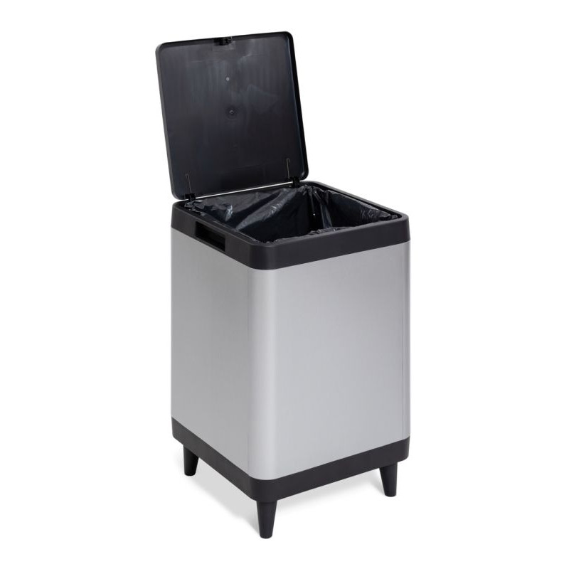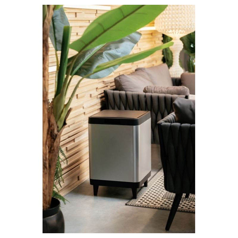 - Elegantný dizajn s hliníkovým efektom, ktorý dodáva košu sofistikovaný a moderný vzhľad, ktorý sa ľahko začlení do akéhokoľvek interiéru.