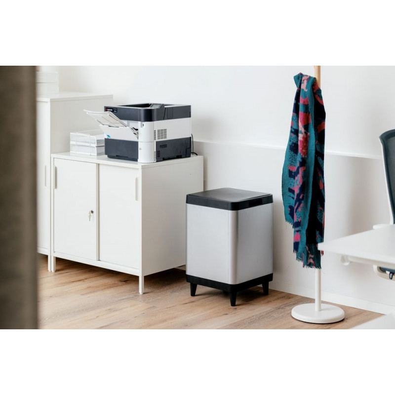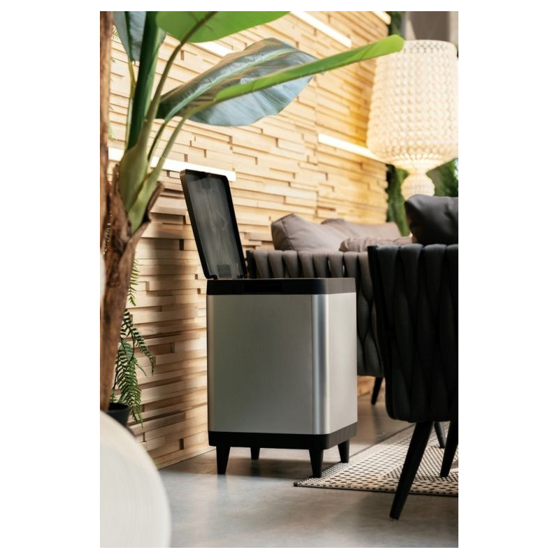 - Utesnené veko efektívne znižuje nepríjemné pachy a udržuje obsah koša skrytý, čím prispieva k príjemnému prostrediu v domácnosti.