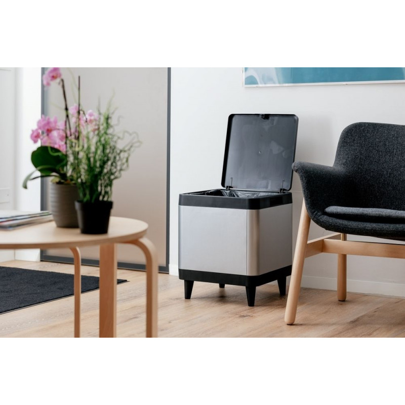 Bočné držadlá a vnútorný rám pre pevné uchytenie vreca na odpadky zaisťujú jednoduchú manipuláciu a výmenu vriec.