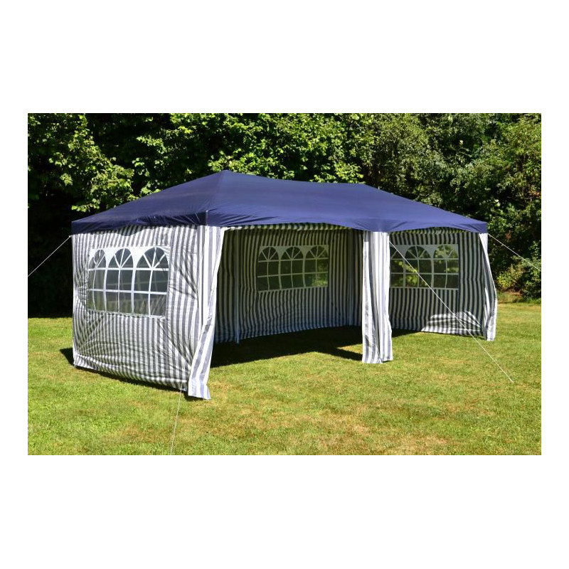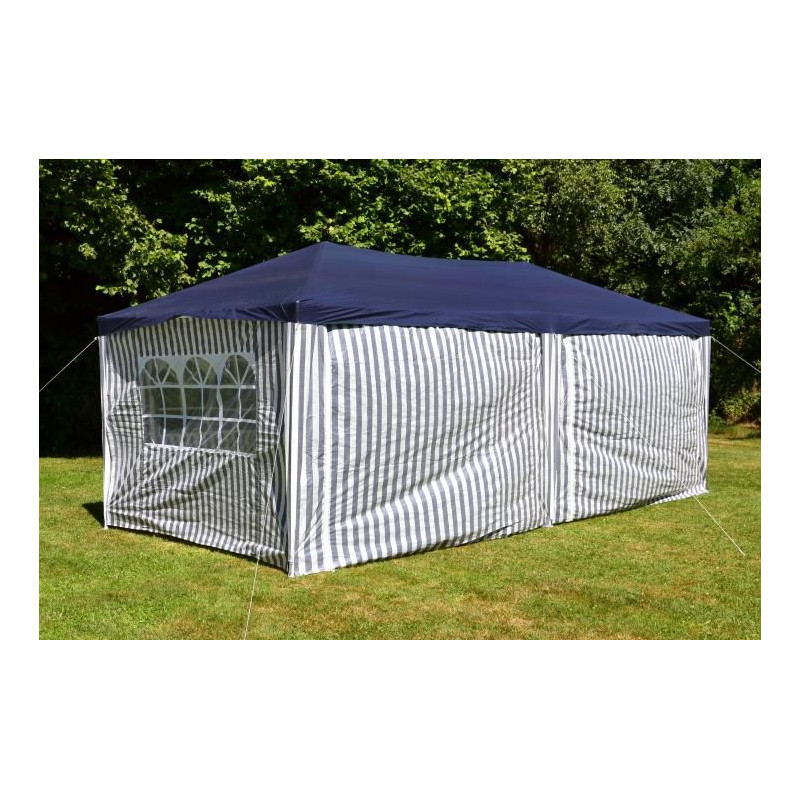 Pavilón je ideálny na Vašu záhradu, na festivaly a podujatia. Ochráni Vás pred nadmerným slnečným svetlom, náhlymi dažďovými búrkami a v chladnejších večerných hodinách pred chladom a prievanom. 2 bočné steny bez okien, 4 s oknami a 2 zipsy na každej strane vchodu. Bočnú stenu môžete "vypnúť" podľa potreby, pripojiť k hornej časti rámu a v prípade potreby ho znovu zavrieť.