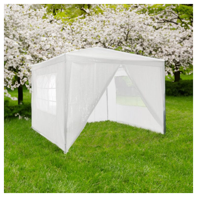 Stan je ideálny na Vašu záhradu, na rôzne oslavy a slávnosti. Ochráni Vás pred slnečným žiarením, ľahkým dažďom a bude Vaším útočiskom pred večerných chladom. Stan je kompletne uzatvárateľný 4 bočnicami. Jedna bočnica bez okien so zipsom je umiestnená vo vstupnom priestore a ďalšie tri bočnice sú vybavené oknami. Vďaka jednoduchej konštrukcii je montáž hračkou a otázkou pár minút. Stan sa upevňuje stanovými kolíkmi do zeme.