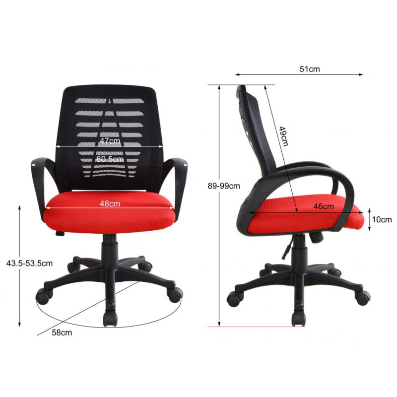 Táto moderná kancelárska stolička kombinuje štýl a pohodlie, čo ju robí ideálnou pre každodenné použitie v kancelárii aj doma. Sieťované operadlo poskytuje skvelú ventiláciu a udržuje vás v pohode po celý deň, zatiaľ čo červené polstrované sedák dodáva stoličke štýlový a atraktívny vzhľad. Polstrované PP opierky rúk a ergonomický dizajn zaisťujú pohodlie aj pri dlhom sedení.