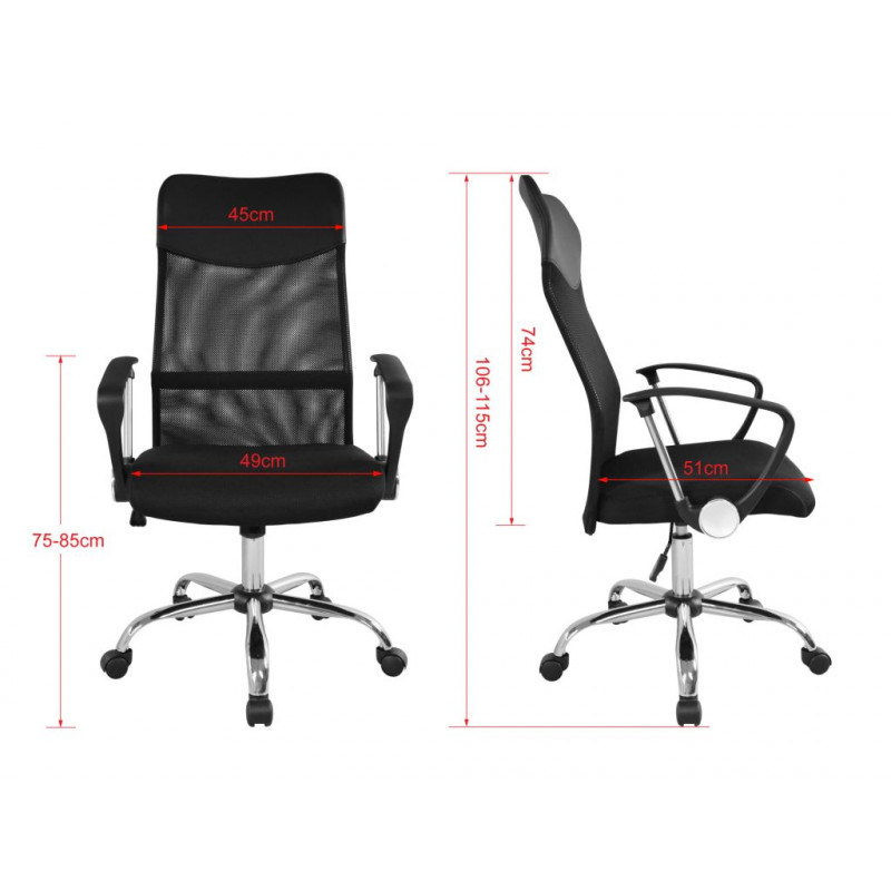 - Materiál: sieťované operadlo (Mesh), PU sedák, chrómované opierky rúk
