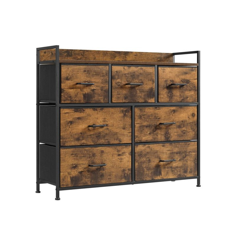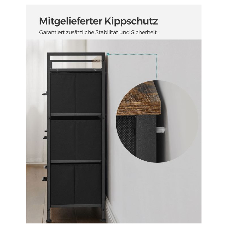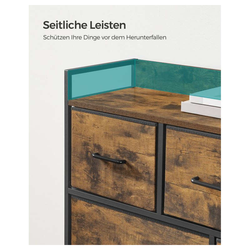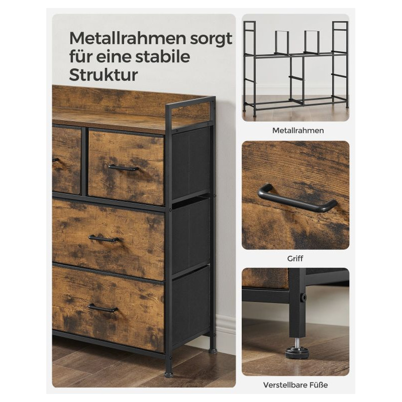 Oživte svoj interiér elegantnou komodou, ktorá kombinuje moderný industriálny štýl s rustikálnym šarmom. Čierny kovový rám a hnedé zásuvky vytvárajú harmonický celok, ktorý priťahuje pozornosť a zároveň ponúka praktické využitie v akejkoľvek miestnosti.