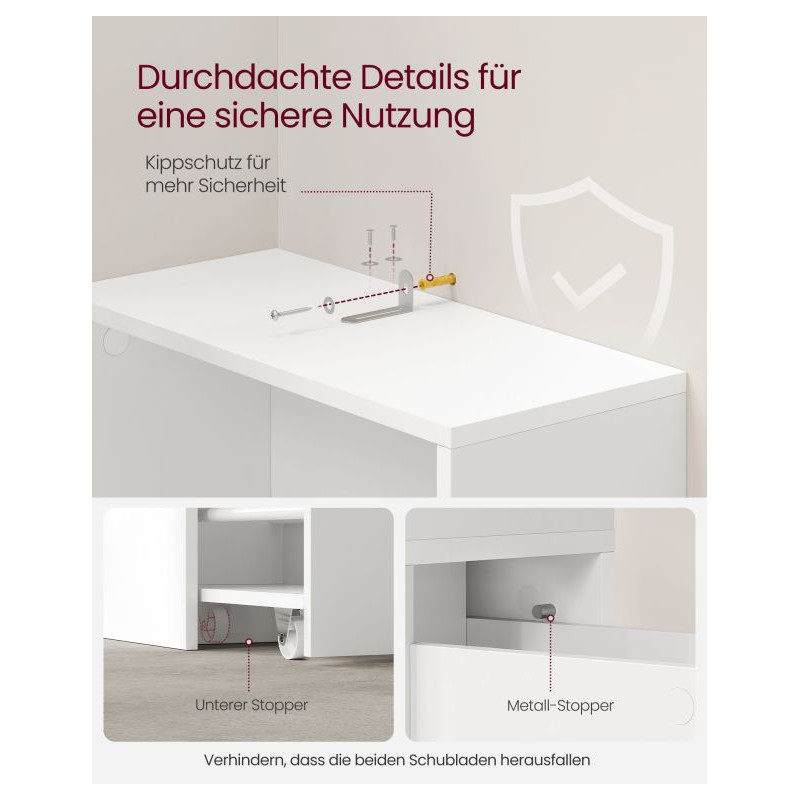 Urobte svoju kúpeľňu útulnejšou a premeňte ju na harmonické miesto, kde má všetko svoje miesto. Skriňa má elegantný, čistý a moderný vzhľad – dokonale doplní každý interiér. Vďaka vysokokvalitnej drevotrieskovej doske je stabilná, pevná a odolná voči vlhkosti. Súčasťou balenia je aj bezpečnostná kotviaca sada, ktorá zabraňuje prevráteniu, takže ju môžete umiestniť vo svojej domácnosti bez obáv, aj keď máte deti.