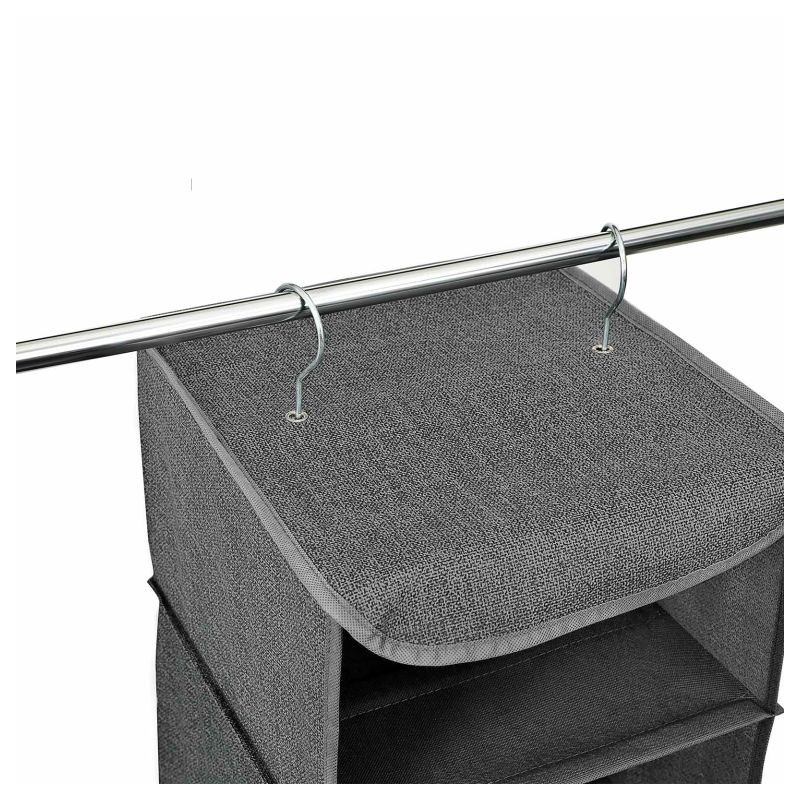 Stabilná konštrukcia vďaka bambusovým výstužám zaisťuje, že sa police neprehýbajú ani pri plnom zaťažení. Montáž je rýchla - stačí zavesiť na tyč v skrini. Ľahký materiál umožňuje ľahké zloženie a prenášanie, ideálny aj na cesty.