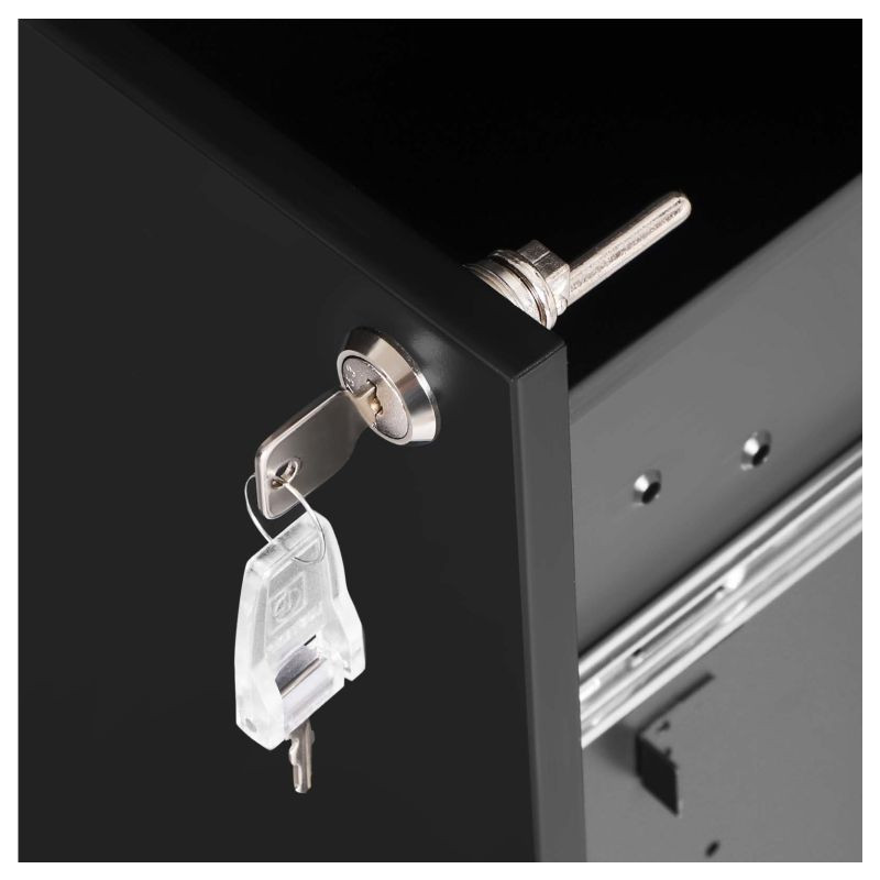 Robustná oceľová konštrukcia zaručuje dlhú životnosť a bezpečné uloženie dokumentov a kancelárskych potrieb. Zásuvky s plným výsuvom unesú až 15 kg a pre väčšiu bezpečnosť ich možno uzamknúť. Kontajner sa dodáva vopred zmontovaný, stačí pripevniť kolieska a môžete ho ihneď používať.