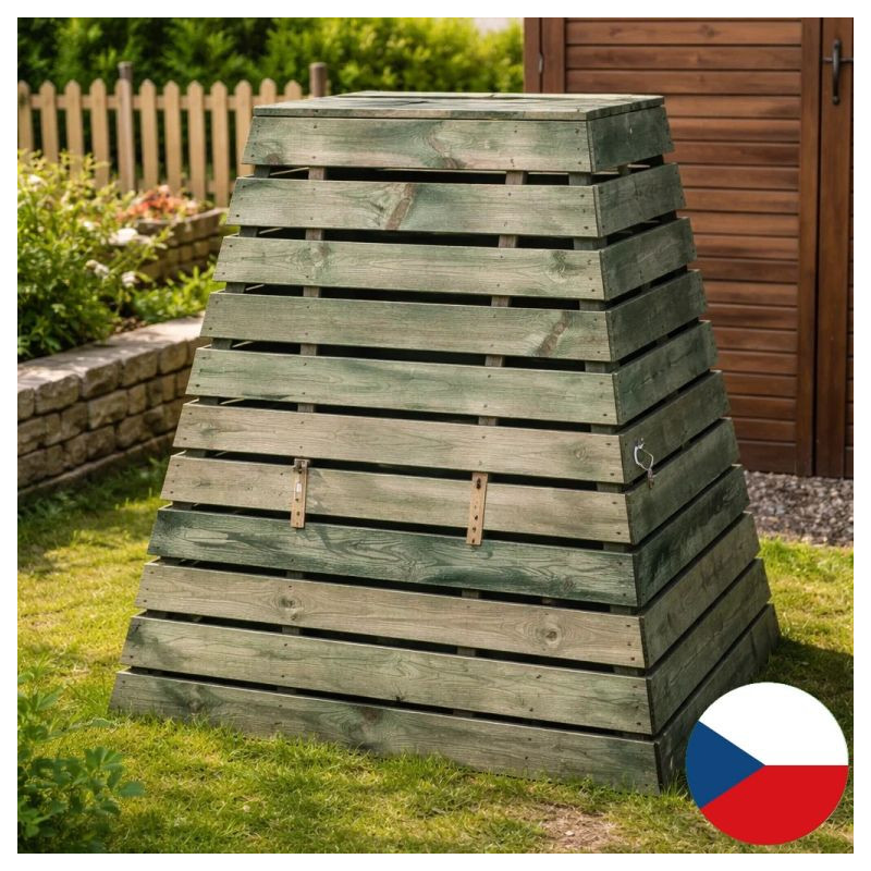 Vyrobený v Českej republike z pevného dreva o sile 20mm a ošetrený prírodným olejom, kompostér vydrží dlhé roky. Pyramídový tvar zaisťuje optimálne prúdenie vzduchu, čo urýchľuje rozklad bioodpadu. Objem 800l a rozmery 103×103×123cm poskytujú dostatok priestoru pre každý záhradný odpad, pričom hmotnosť 44kg zaručuje stabilitu.