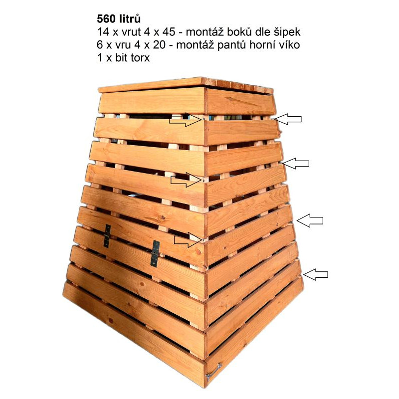- 1× drevený kompostér pyramída 560l (rozložený)