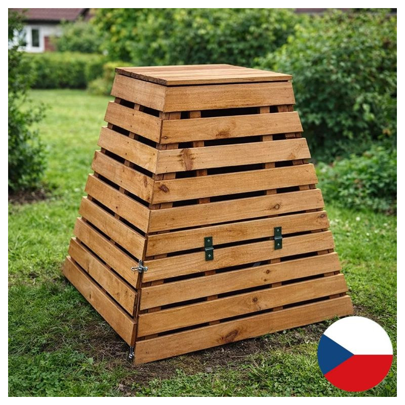 Kompostér je vyrobený v českej stolárni zo smrekového alebo borovicového dreva ošetreného prírodným olejom. S objemom 430 litrov ponúka dostatok priestoru na bioodpad a vďaka pevnému spracovaniu sa stane dlhodobým pomocníkom na vašej záhrade. Praktické veko a otváracia predná časť uľahčí manipuláciu aj vyberanie hotového kompostu.