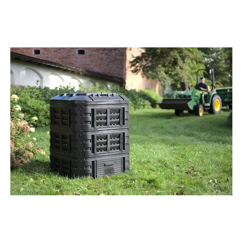 Plastový kompostér s objemom 600 l z veľmi pevného polypropylénu. Konštrukcia zabezpečuje cirkuláciu vzduchu a urýchľuje proces rozkladu. Súčasťou výrobku je veko aj bočné dvierka pre jednoduché vyberanie kompostu. Kompostér je odolný voči poveternostným podmienkam, UV žiareniu a môžete ho mať vonku za každého počasia od -30 °C do 45 °C. Montáž je veľmi jednoduchá, vďaka systému CLICK nie je potrebné žiadne náradie. Vyrobené z recyklovaného materiálu. Výhody kompostéra: Systém kvapkovej závlahy. Otvor pre visací zámok. Pevné bočné západky. Zavlažovanie a prevzdušňovanie. Pevné pánty poklopov. Pohodlná rukoväť. Veľké posuvné dvierka s pohodlnými úchytmi. Montáž zemných kotiev.
