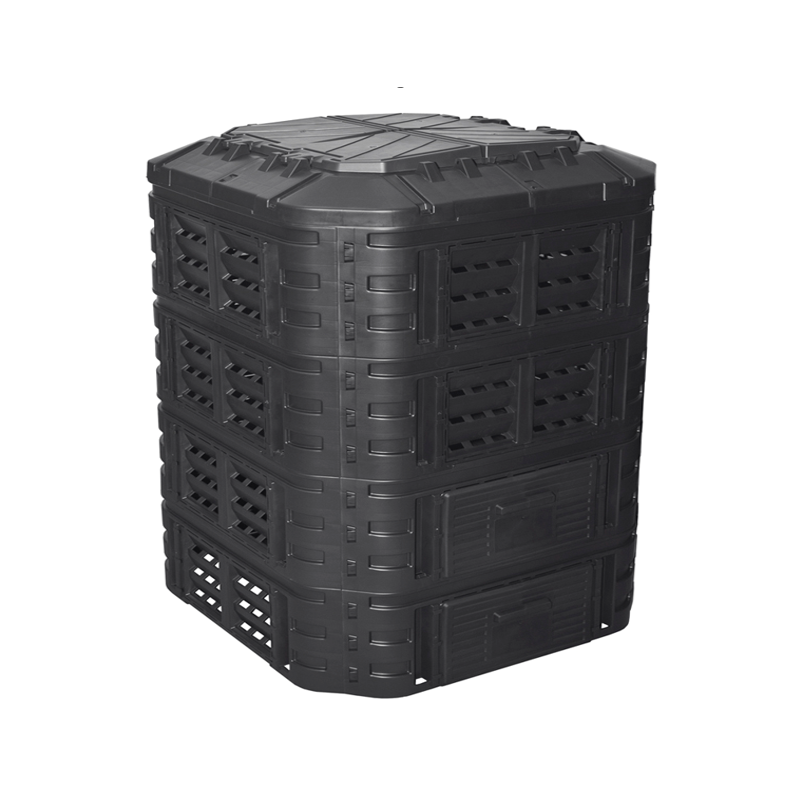Plastový kompostér s objemom 1120 l vyrobený z veľmi odolného polypropylénu. Konštrukcia zabezpečuje cirkuláciu vzduchu a urýchľuje proces rozkladu. Súčasťou produktu je veko a bočné dvierka pre ľahké vyberanie kompostu. Kompostér je odolný voči poveternostným vplyvom a UV žiareniu a môže byť umiestnený vonku za všetkých poveternostných podmienok od -30 °C do 45 °C. Montáž je veľmi jednoduchá, vďaka systému CLICK nie sú potrebné žiadne náradie. Vyrobené z recyklovaného materiálu. Výhody kompostéra: Systém kvapkového zavlažovania. Otvor na visiaci zámok. Pevné bočné západky. Zavlažovanie a prevzdušňovanie. Pevné pánty veka. Pohodlná rukoväť. Veľké posuvné dvierka s pohodlnými rukoväťami. Inštalácia zemného kotviaceho systému.