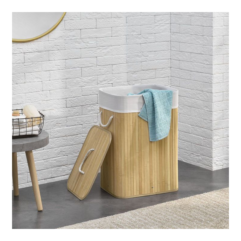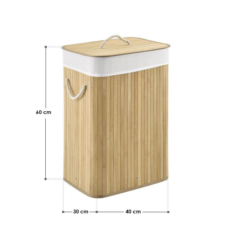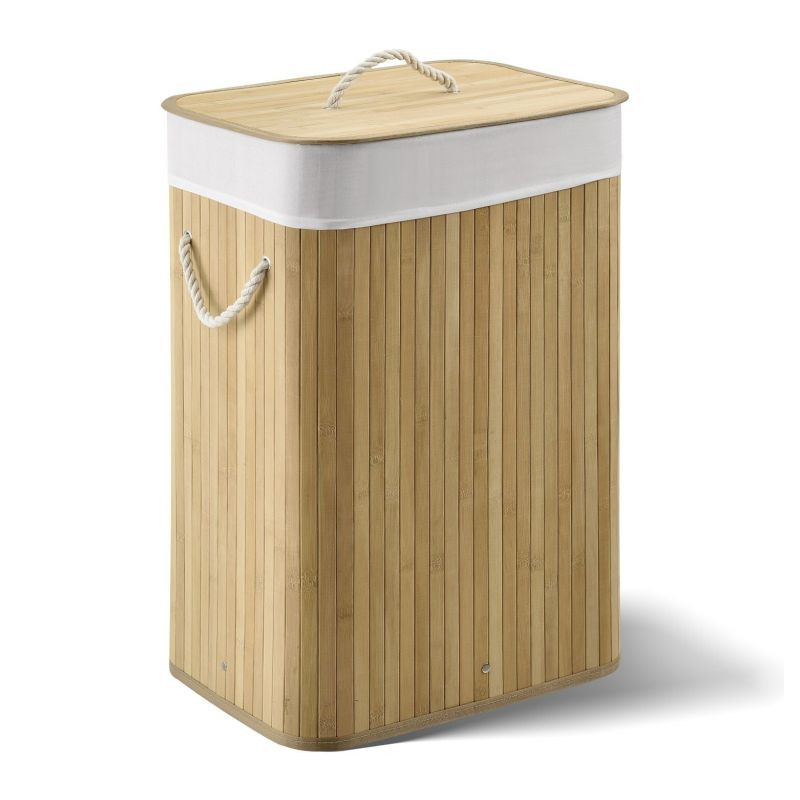 Tento praktický 72-litrový bambusový kôš na bielizeň vám pomôže udržiavať váš domov čistý, uprataný a bez nepríjemných zápachov. Vďaka viečku, odnímateľnej textilnej taške a dvom pevným uchám je manipulácia s ním jednoduchá a skladovanie bielizne hygienické a pohodlné. Jeho prirodzený vzhľad je moderný a diskrétne zapadá do kúpeľne, spálne alebo detskej izby.