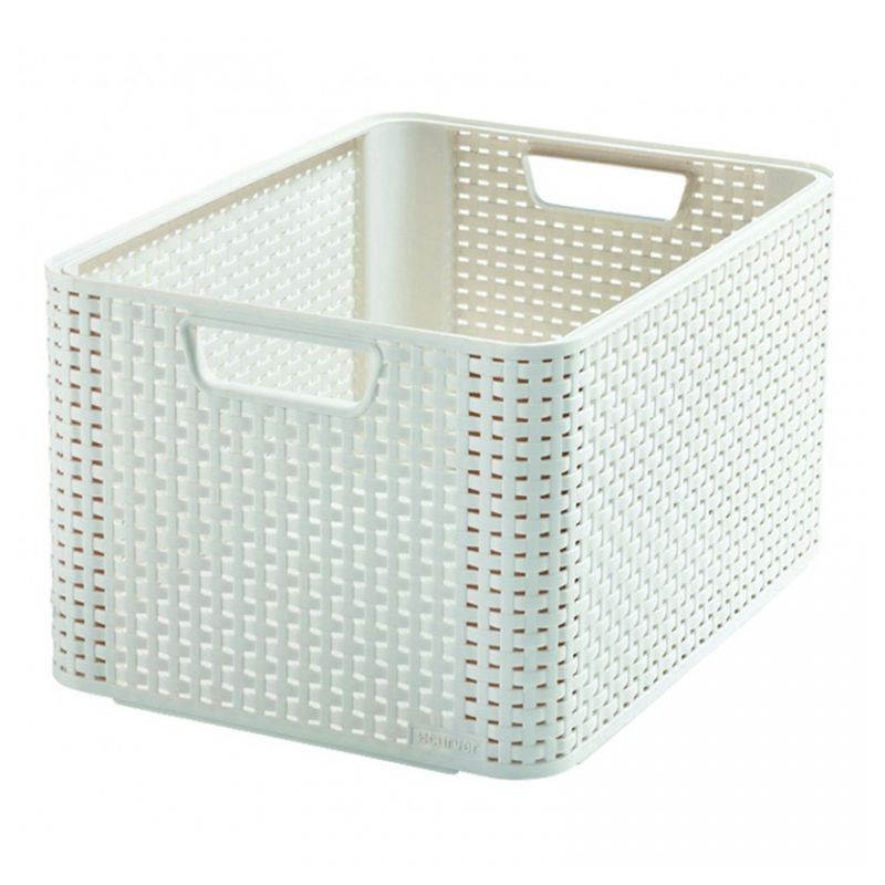 Plastový úložný box ratanového vzhledu od kvalitní značky Curver. Jednoduchá manipulace díky dvěma pevným úchytům ve výpletu, který zajišťuje cirkulaci vzduchu. Box je krémové barvy a je bez víka. Možnost vrstvení boxů na sebe (vytvoříte úložný systém)