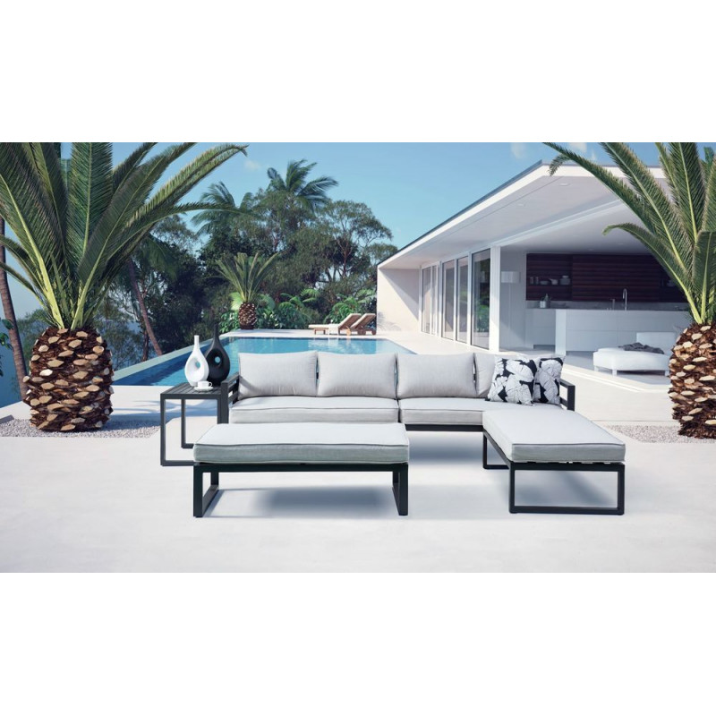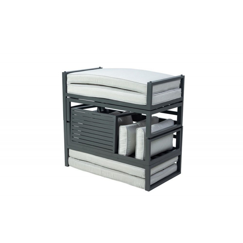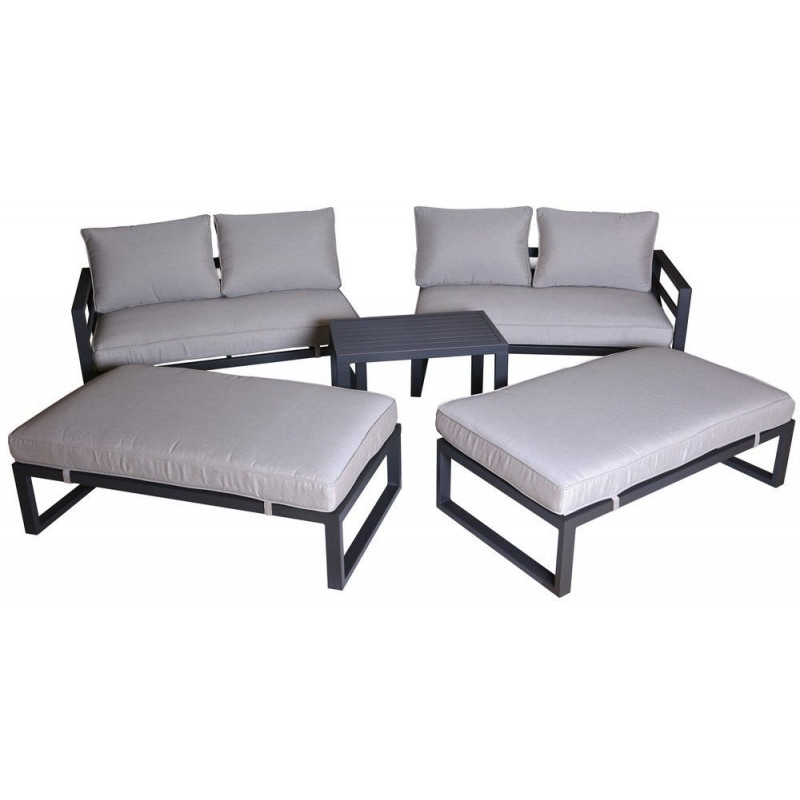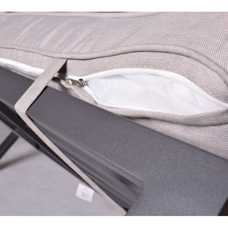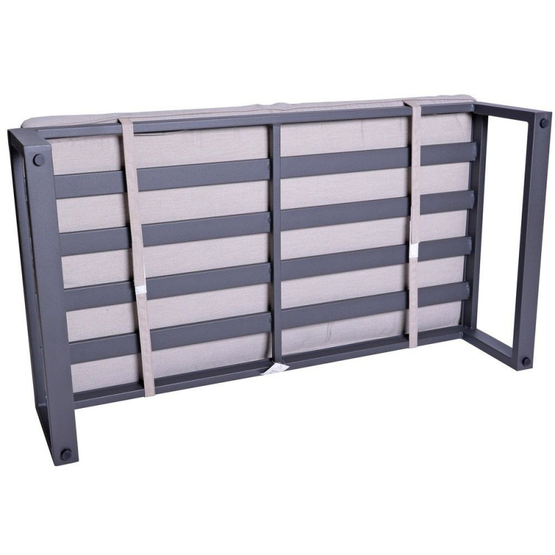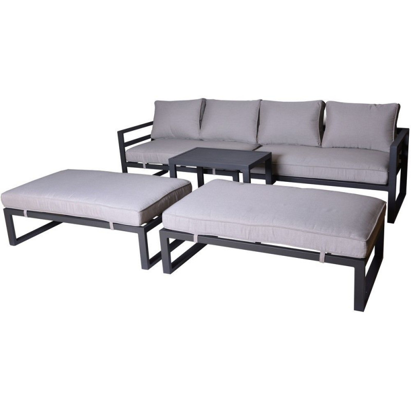 Luxusná súprava s hliníkovou konštrukciou, ktorá je pokrytá šedou práškovou farbou. Moderný design. Súprava má veľmi široké využitie. Je vhodná pre vnútorné aj vonkajšie priestory, záhrady, terasy, zimné záhrady či balkóny. Podsedáky aj vankúše sú vybevené zipsami, takže je možné poťah zložiť. Jednoduché zostavenie a zloženie. V zloženom stave zaberie minimum miesta.