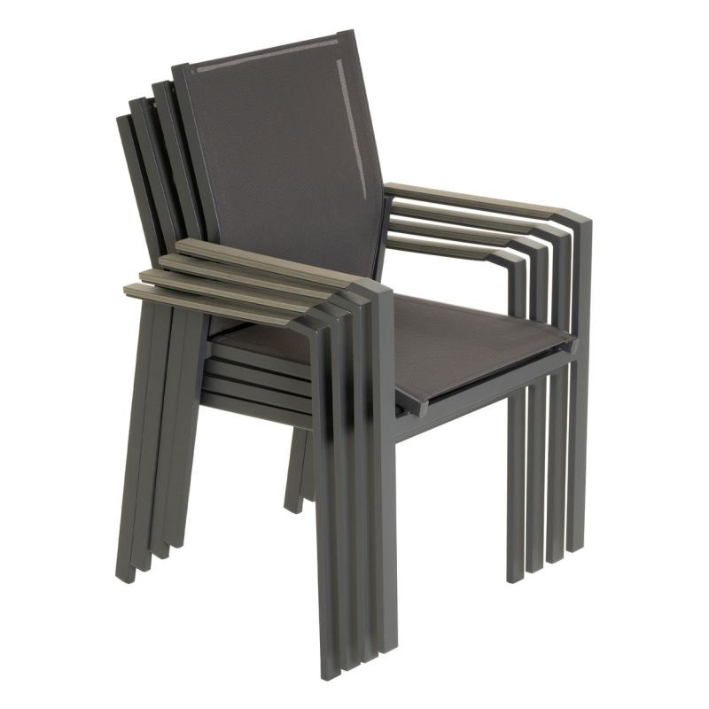Tieto pohodlné stohovateľné stoličky sú ideálne na použitie vo vnútri aj vonku. V závislosti na tom, koľko miesta máte, môžete na seba naskladať mnoho stoličiek - ale sada stoličiek zaberie iba miesto jednej stoličky. Najmä ak stoličky používate len príležitostne, je možné ich pre úsporu miesta ľahko uložiť do kôlne alebo pivnice. Stoličky ponúkajú maximálnu flexibilitu, sú praktické, pohodlné, stabilné a odolné proti poveternostným vplyvom. Hnedé podrúčky dodávajú stoličke veľmi zvláštny šmrnc. Skombinujte tieto stoličky s našimi ľahko udržiavateľnými vonkajšími stolmi. Týmto spôsobom si môžete vytvoriť svoju vlastnú jedálenskú zostavu.