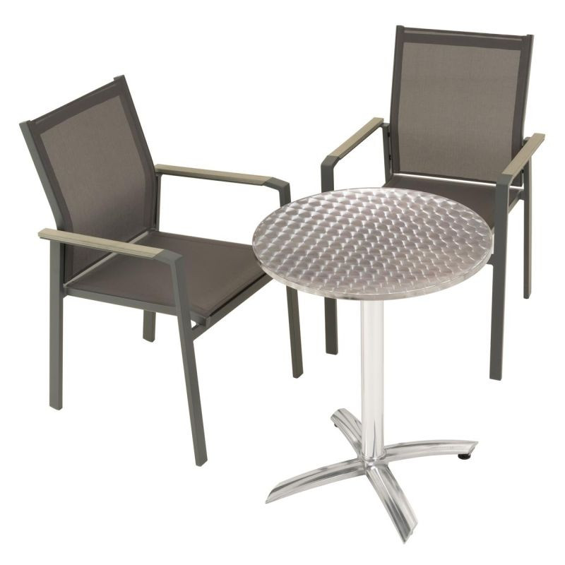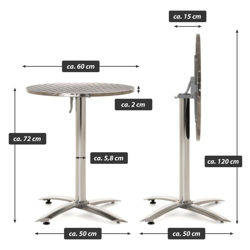 Táto priestorovo úsporná sada stola a stoličiek je ideálna pre pohostinné raňajky, večeru alebo posedenie s rodinou na záhrade alebo zimnej záhrade, balkóne alebo terase. Kovový stôl je veľmi stabilný, priestorovo úsporný a vďaka praktickej funkcii skladania je možné stôl ľahko kamkoľvek uložiť. Môžete na seba naskladať viac stoličiek avšak sada stoličiek zaberie iba miesto jednej stoličky. Najmä ak stoličky používate len príležitostne, je možné ich pre úsporu miesta ľahko uložiť do kôlne alebo pivnice. Na rám stola bol použitý eloxovaný hliník. Tento skladací stôl je tiež odolný voči poveternostným vplyvom a ľahko sa čistí.