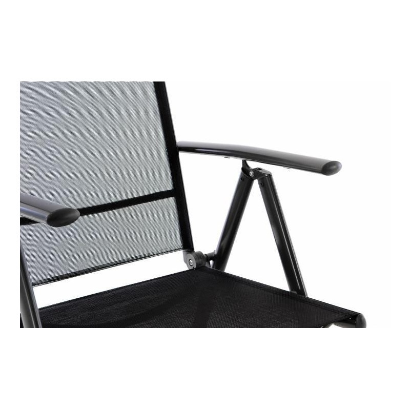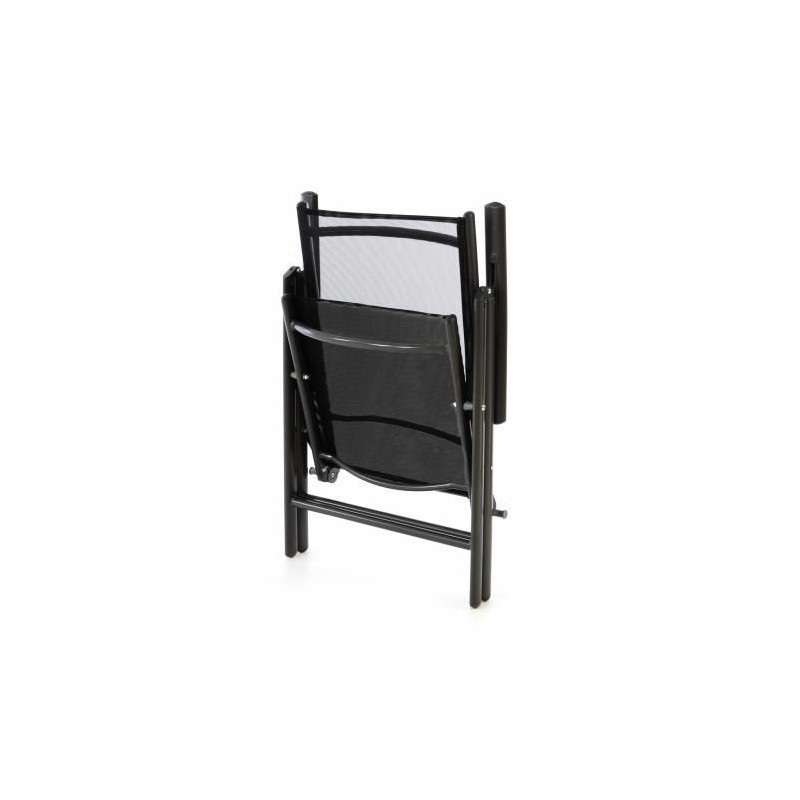 Stolička je ľahká, skladná a veľmi pohodlná. Kvalitný textil (PVC potiahnutý polyester) je odolný voči vplyvom počasia a švy sú zvarené. Textília zaručuje optimálnu ventiláciu sedadla a operadla. Tkanina sa prispôsobí kontúre chrbta.