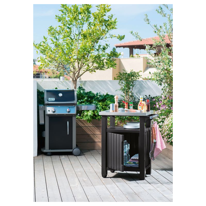 Multifunkčný úložný stôl - ideálny pri grilovaní, sadení rastlín apod. Všetko máte ihneď k dispozícii. Ľahká montáž + kovová doska.