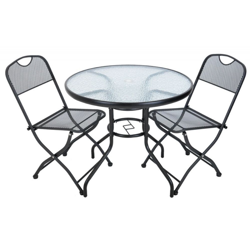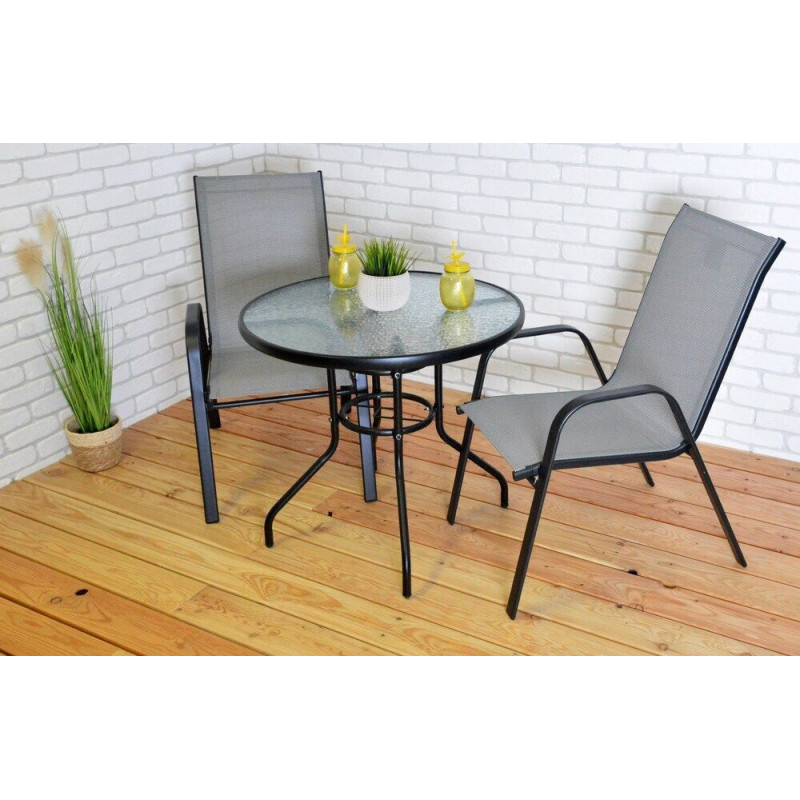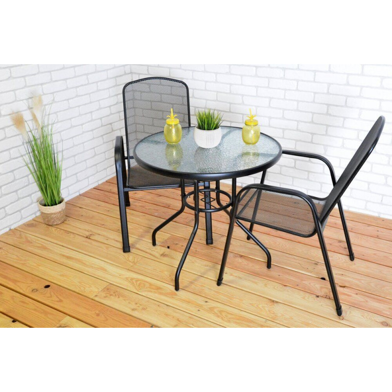 Okrúhly kovový stôl so sklenenou stolovou doskou (5mm).