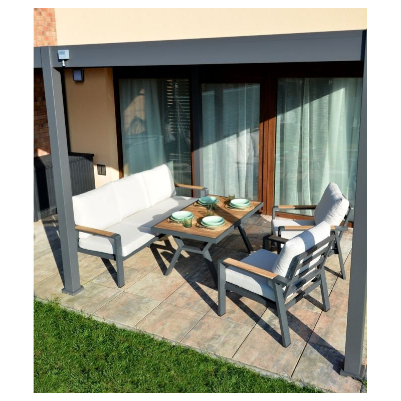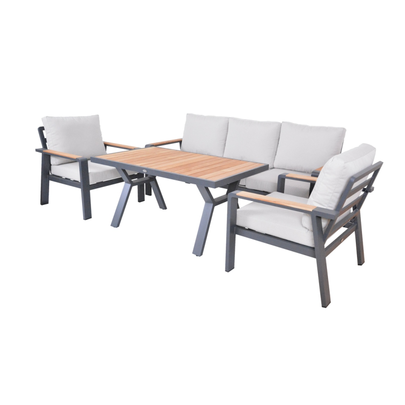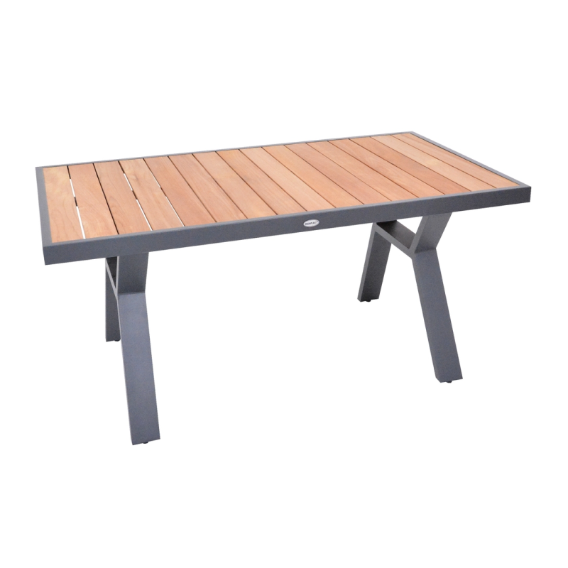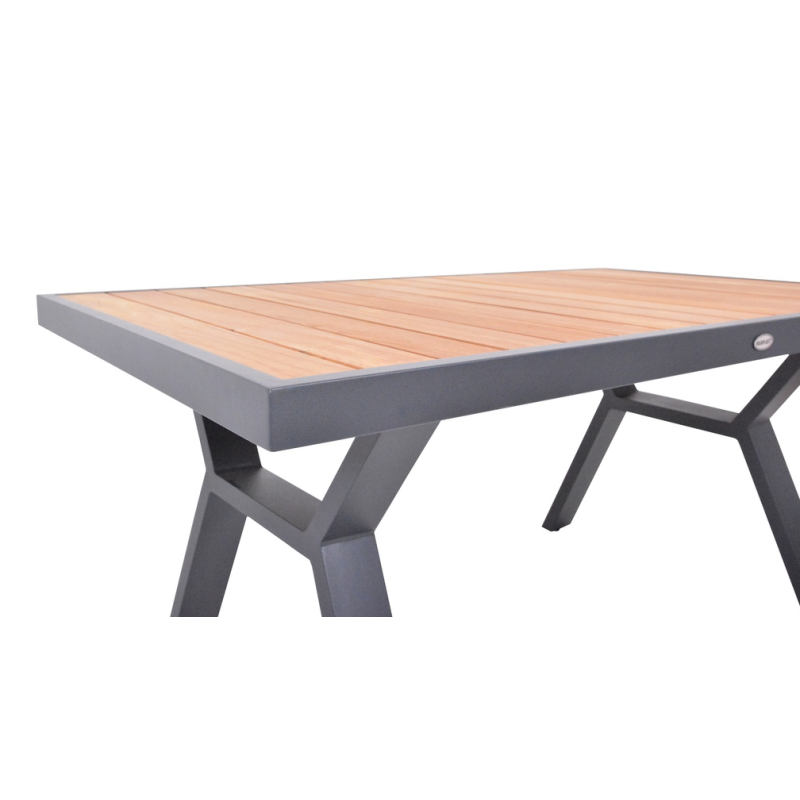 Vytvorte si príjemné miesto na stolovanie s týmto moderným jedálenským stolom z hliníka a teaku. Elegantný grafitový dizajn sa hodí do každého priestoru a vďaka kvalitným materiálom bude stôl slúžiť dlhé roky.