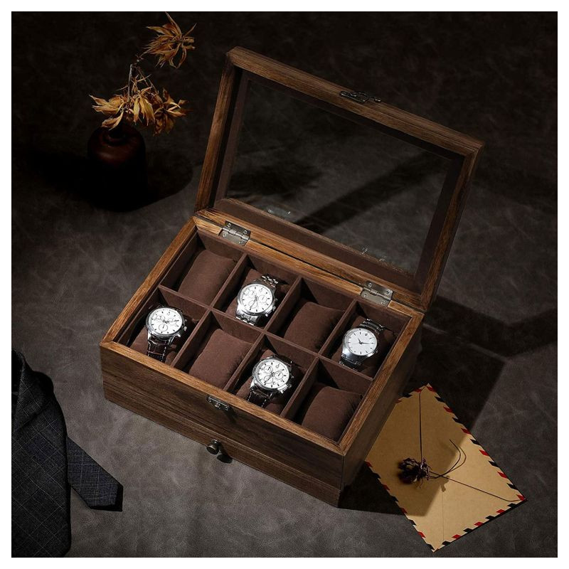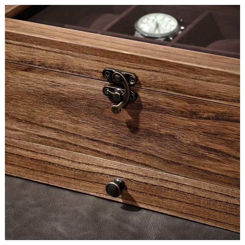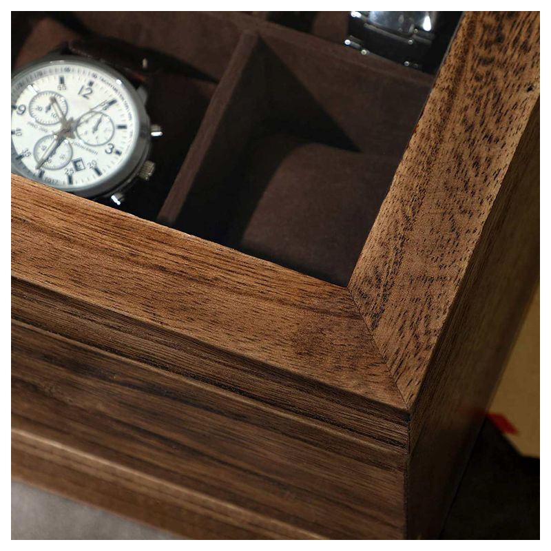 Masívny rám z paulownia dreva zaručuje pevnosť a odolnosť, zatiaľ čo mäkký zamat chráni vaše hodinky pred poškriabaním. Sklenené veko umožňuje rýchly výber a spodná zásuvka poskytuje priestor pre ďalšie príslušenstvo. Ľahká údržba a praktické rozmery zaručujú pohodlné používanie.