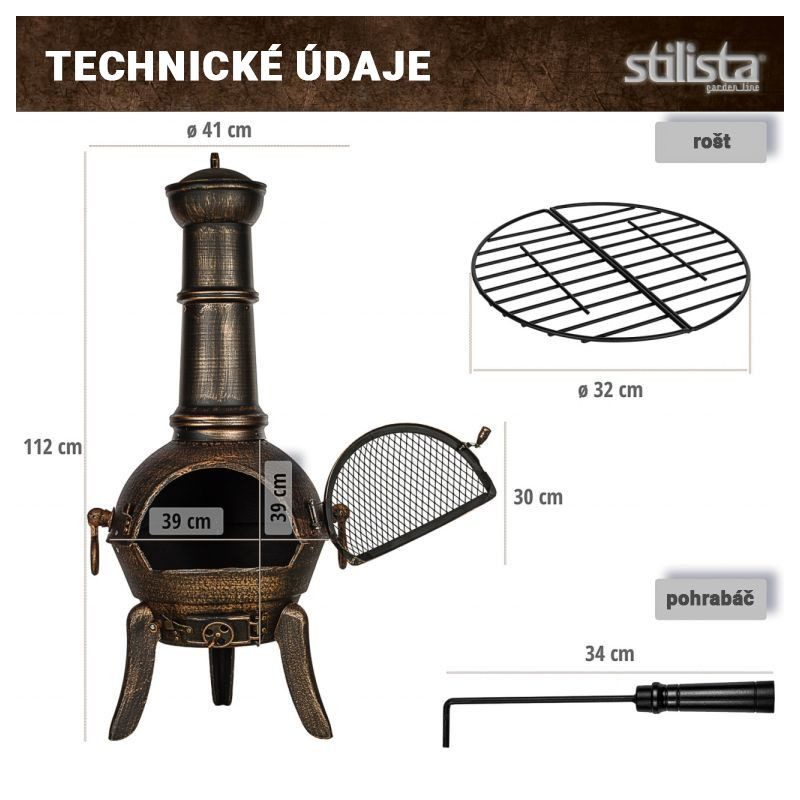 Krb vytvára krásnu atmosféru v každom ročnom období. Dodáva sa v ušľachtilom dizajne a má klapku na podpaľovanie na rýchle zapálenie ohňa. Súčasťou dodávky je aj rošt, pohrabáč, mriežka proti iskrám a veko ako ochrana proti dažďu.