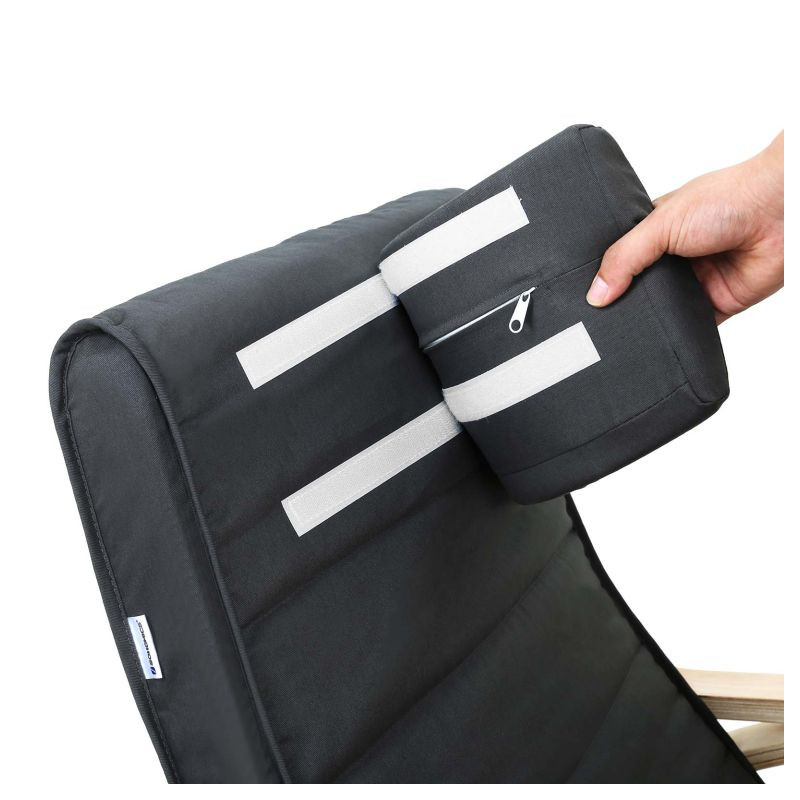 Rozmery kresla sú 55 × 80 × 91 cm, pričom robustná konštrukcia z ohýbaného brezového dreva bez problémov unesie až 150 kg. Poťah zo 100% bavlny je priedušný, príjemný na dotyk a vďaka zipsu ho možno ľahko zložiť a vyprať. Penová výplň zaručuje pohodlie aj pri dlhšom sedení. Praktická opierka nôh ponúka päť polôh nastavenia, takže si vždy nájdete ideálnu pozíciu na čítanie, sledovanie obľúbeného filmu alebo krátky odpočinok. Pre ešte väčší komfort je súčasťou odnímateľný vankúšik na podoprenie hlavy a krku.