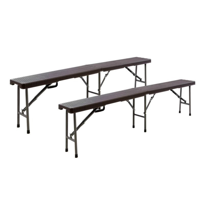 Hnedé sklopné lavice zaujmú ušľachtilým designom v ratanovom vzhľade.