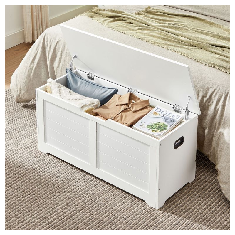 Objavte praktické riešenie na udržanie poriadku a zároveň elegantný doplnok do interiéru. Úložná lavica VASAGLE v matne bielej farbe prinesie vášmu domovu moderný štýl, pohodlie pri sedení a dostatok priestoru pre deky, topánky či oblečenie. Vďaka svojmu čistému dizajnu zapadne do predsiene, spálne aj obývacej izby.