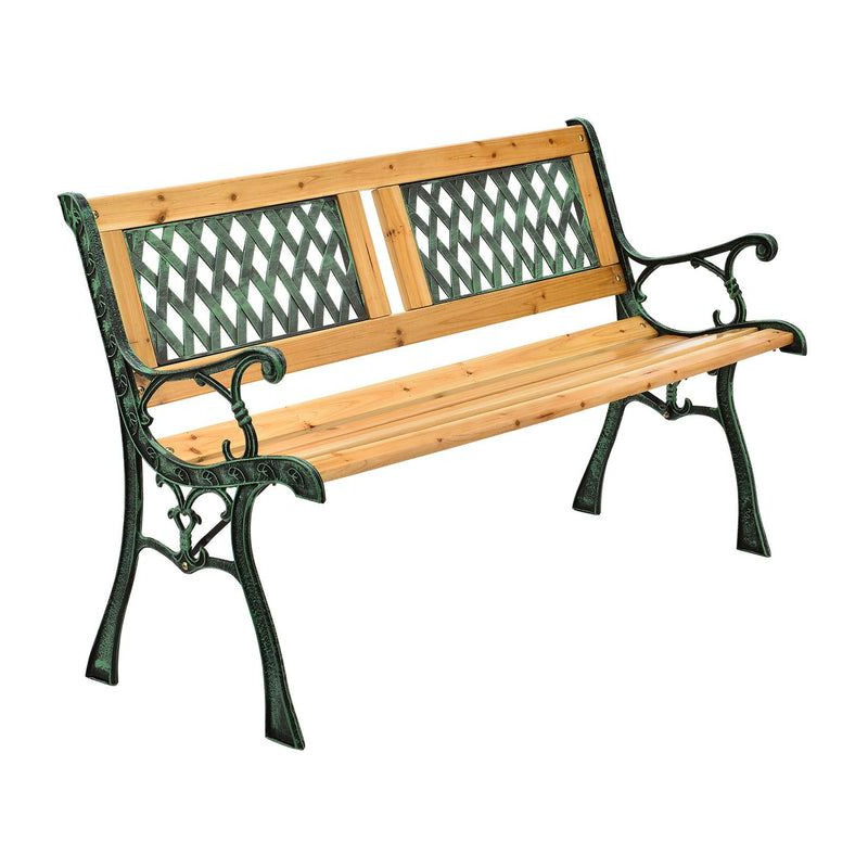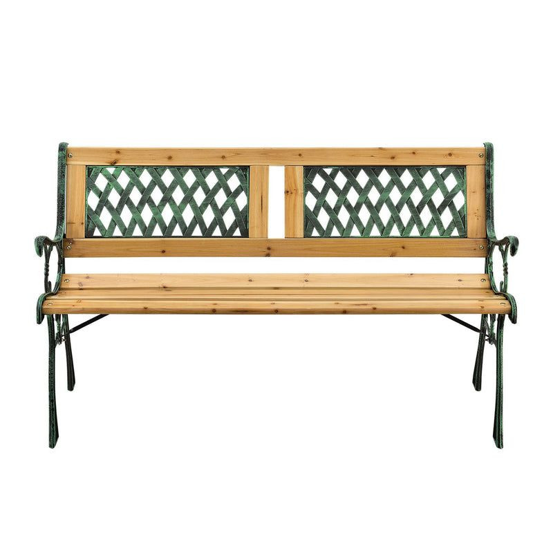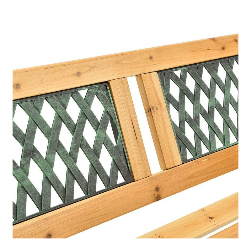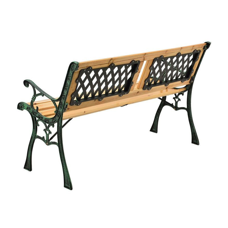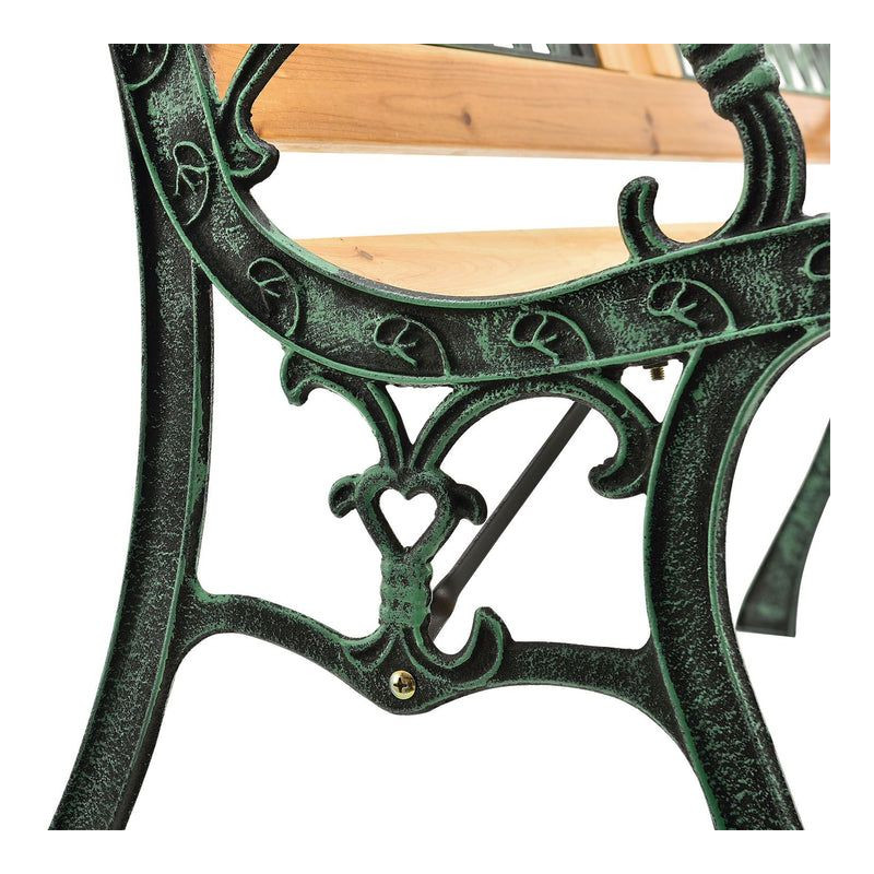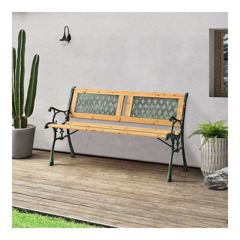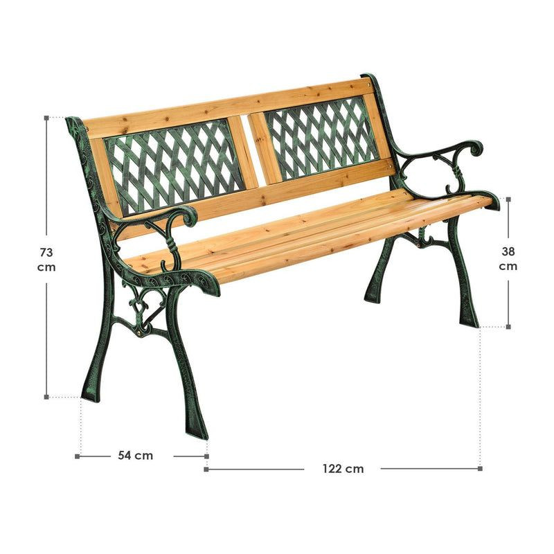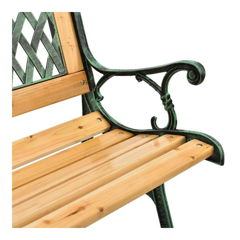 Kombinácia lakovaného dreva a liatiny zaručuje vysokú odolnosť a stabilitu. Lavica je vhodná pre dve osoby, má pohodlné opierky na ruky a je ľahko udržiavateľná. Povrchová úprava chráni pred dažďom a slnkom.