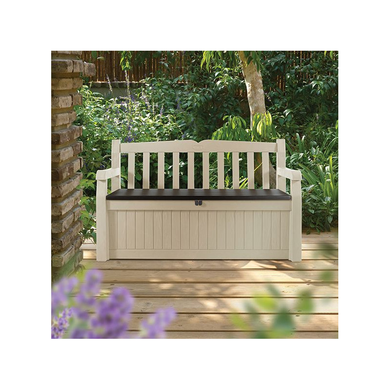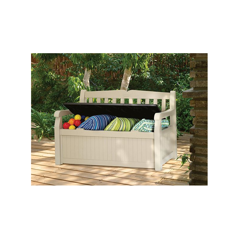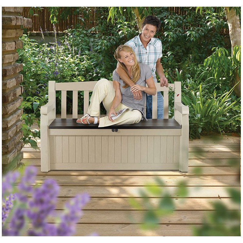 Plastová lavica s úložným priestorom.