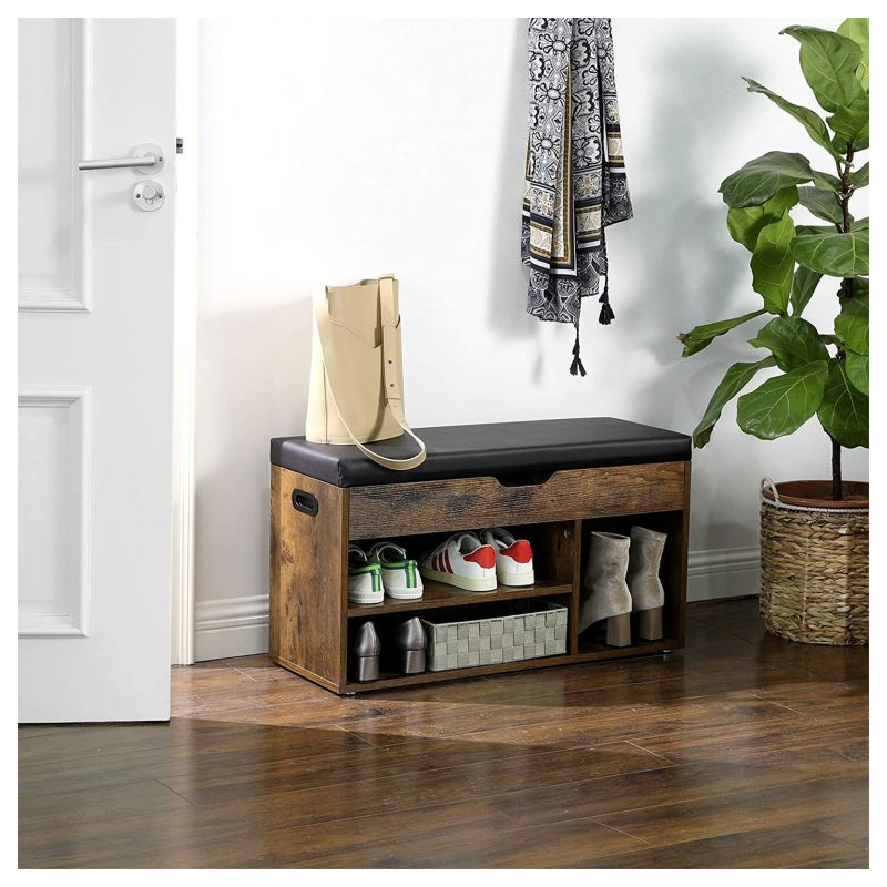 Doprajte svojmu domovu funkčný a štýlový kúsok, ktorý spája lavicu a botník v jednom. Praktická lavica VASAGLE ponúka nielen komfortné sedenie vďaka mäkkému polstrovaniu, ale aj šikovný úložný priestor pre obuv aj drobnosti. Už žiadne zháňanie topánok po byte - všetko má svoje miesto na jednom elegantnom kuse nábytku v rustikálnom hnedom dekore.