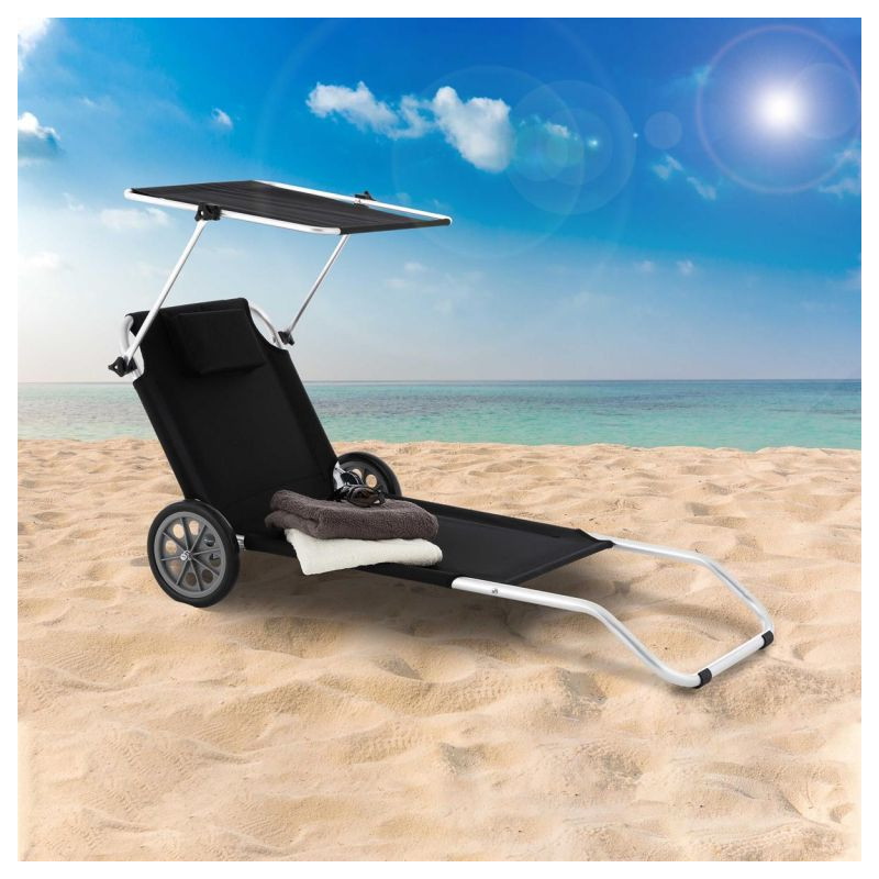 S týmto praktickým lehátkom si môžete skrášliť terasu, balkón, saunu, wellness alebo záhradu. Vhodné na vnútorné i vonkajšie použitie, na použitie pri bazéne alebo na kempovanie. Možno ho použiť aj ako pomôcku na prepravu plážového náčinia. Slnečnú clonu je možné podľa potreby plynule nastavovať, aby nedošlo k úpalu. Vysoko kvalitný rám, rýchloschnúca ležacia plocha odolná proti roztrhnutiu, praktický relaxačný vankúšik pod hlavu pre príjemné ležanie, to všetko sú vlastnosti tohto lehátka. Príjemné pohodlie pri ležaní zaisťuje operadlo nastaviteľné v piatich smeroch s praktickou priehradkou zo sieťoviny. Priestorovo úsporné skladanie - jednoduchá preprava vďaka 2 stabilným kolieskam.