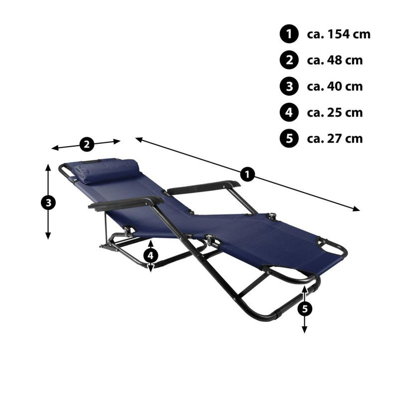 Praktické skladacie ležadlo pre príjemné chvíle na Vašej záhrade. Ležadlo je vhodné na záhradu, terasu, ale aj na dovolenku. Súčasťou je tiež vankúš pod hlavu, ktorý je možné odopnúť.