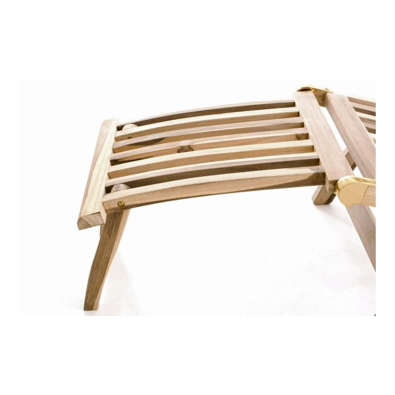 Operadlo je nastaviteľné do 4 polôh, takže sedenie alebo ležanie si môžete prispôsobiť individuálnym požiadavkám. Sedák a zadná časť sú vyrobené z vložených drevených vzpier, čo dodáva stoličke veľmi atraktívny vzhľad. Ak sa nepoužíva, môže byť zbalené a uložené veľmi úsporným spôsobom. Zvláštnosťou lehátka je odnímateľný nožný diel, čím je ležadlo mnohostranne použiteľné.