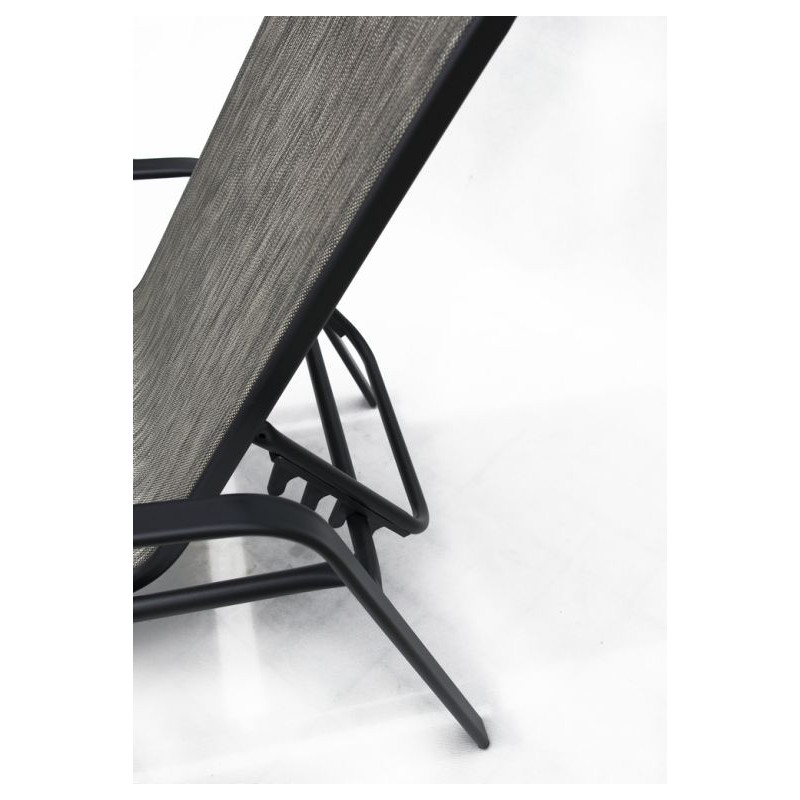 Elegantné polohovacie lehátko so stabilnou kovovou kostrou sivej farby. Sedák a oporná plocha je z textílie. Lehátko je vhodné na záhrady aj terasy. Je možné si vybrať z viacerých farebných kombinácií.
