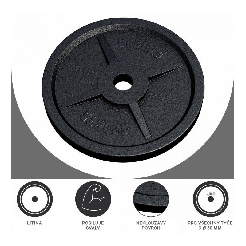 Gorilla Sports Záťažový kotúč 50/51 mm, liatina, 20 kg
