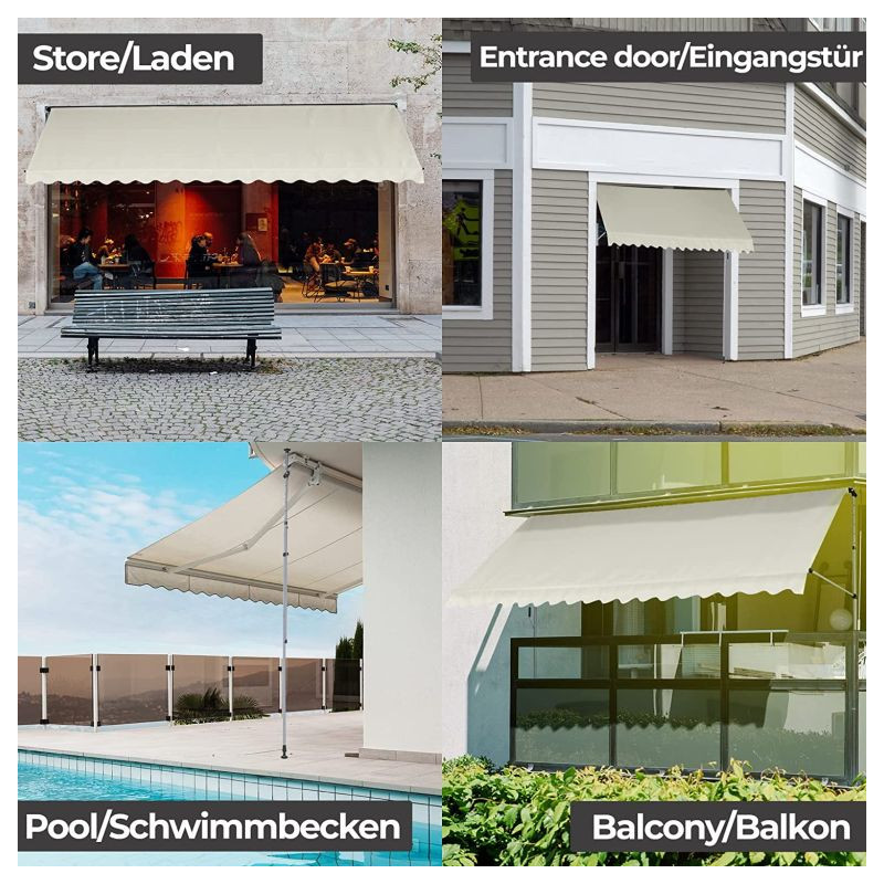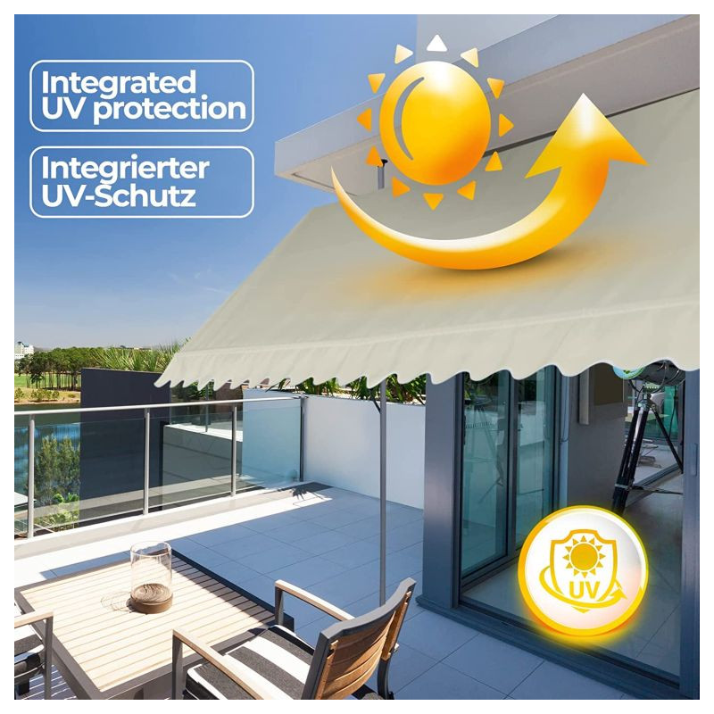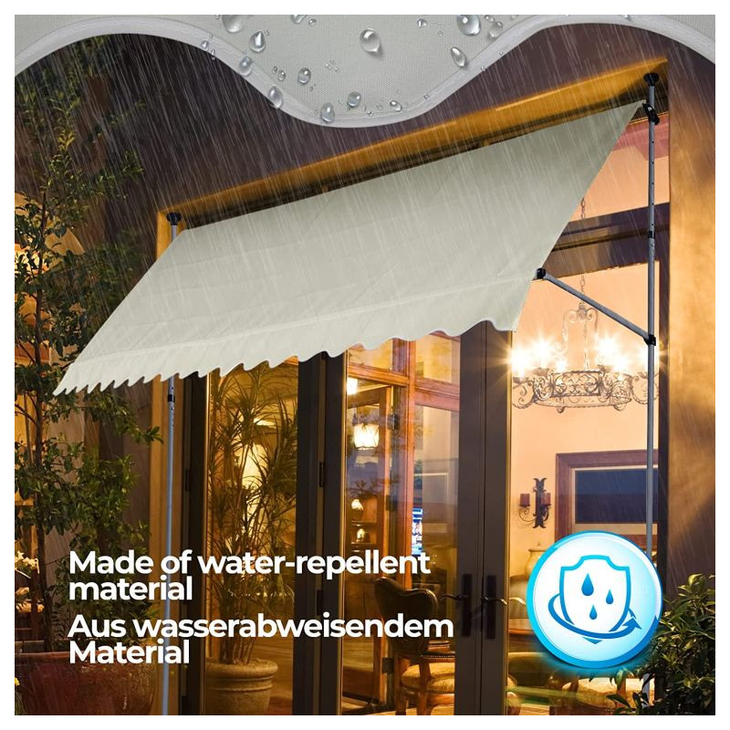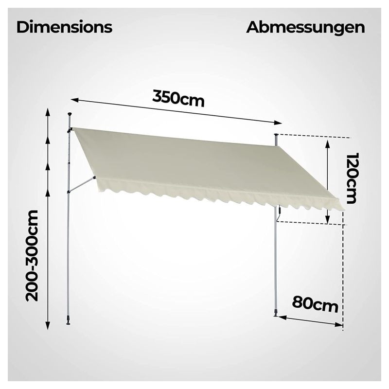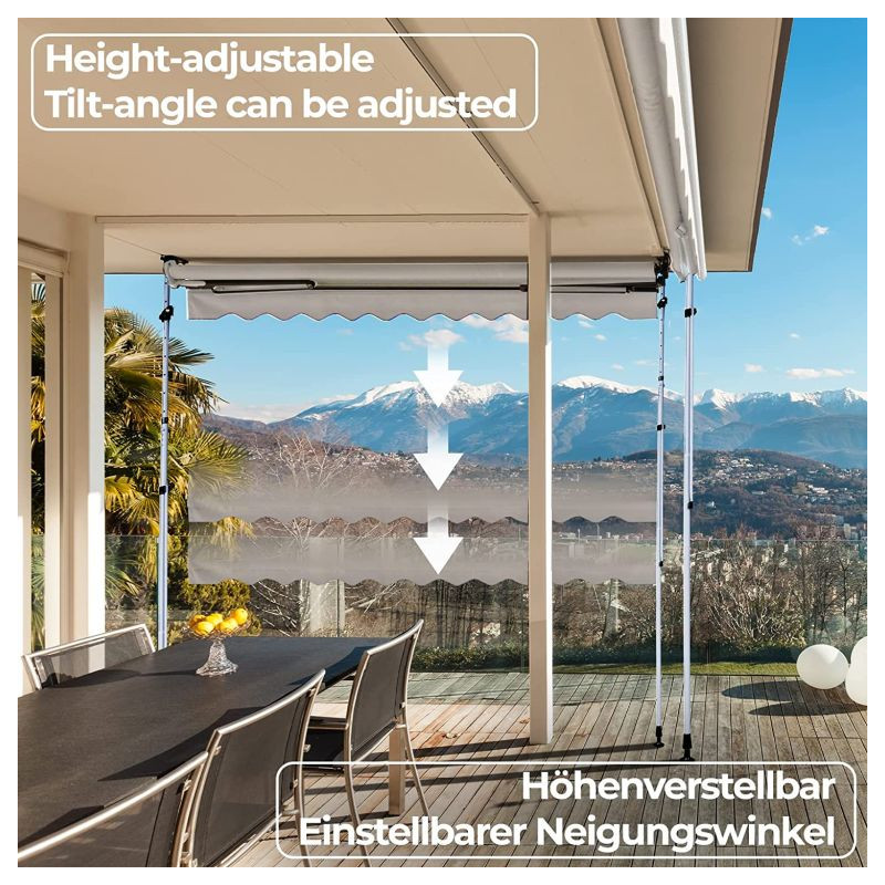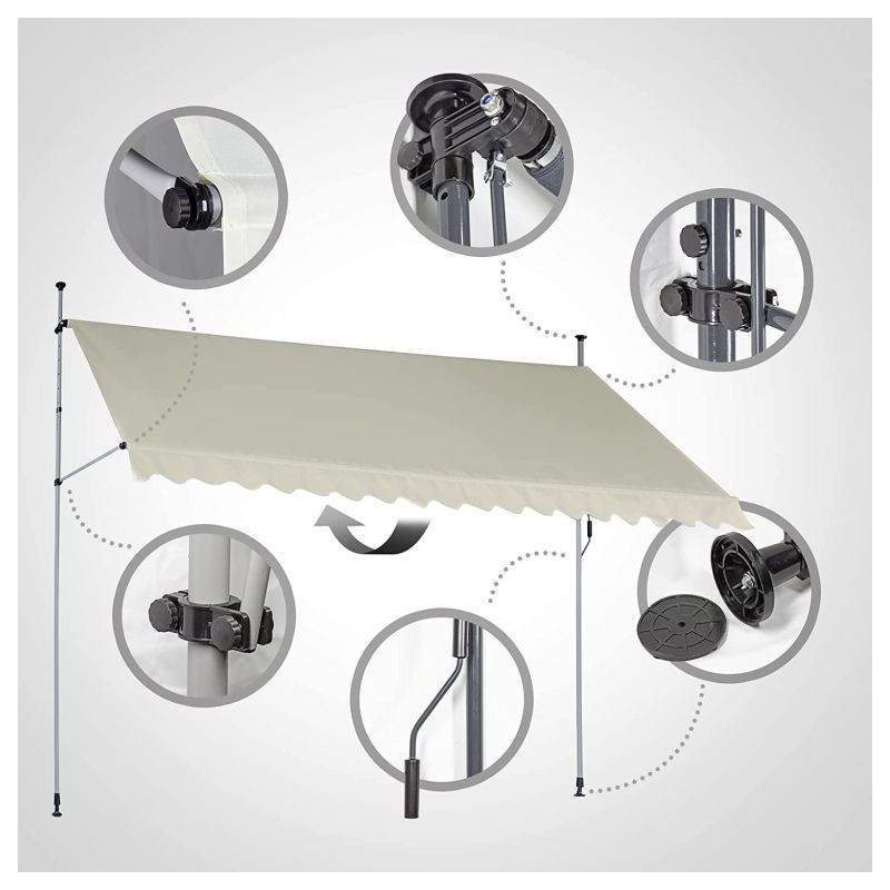 Balkónová markíza je kompletne vyrobená z vodotesného polyesteru s polyuretánovou vrstvou s integrovanou UV ochranou. Výšku slnečnej markízy je možné nastaviť medzi 2 a 3 m, takže markízu môžete prispôsobiť potrebám Vašej miestnosti. Ručne ovládanú terasovú markízu je možné individuálne nastaviť vďaka ručnej kľučke teleskopickej tyče, ktorá reguluje uhol sklonu. Vďaka praktickému upevneniu je upínacia markíza obratom ruky pripravená na použitie bez toho, aby boli nutné zbytočné zásahy do Vašej miestnosti.