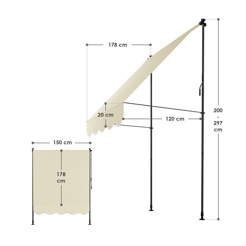 Odolná konštrukcia z ocele a kvalitná polyesterová tkanina s PU povlakom zaručujú dlhú životnosť. Jednoduchá montáž bez vŕtania je vhodná aj pre menej skúsených užívateľov. Výškovo nastaviteľná markíza umožňuje ľahké prispôsobenie vašim potrebám.